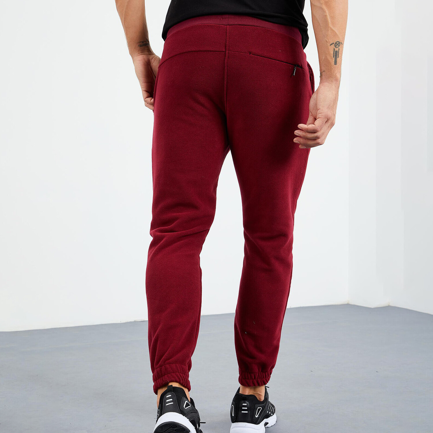 Men's Hidden Zipper Polar Fleece Joggers // Burgundy