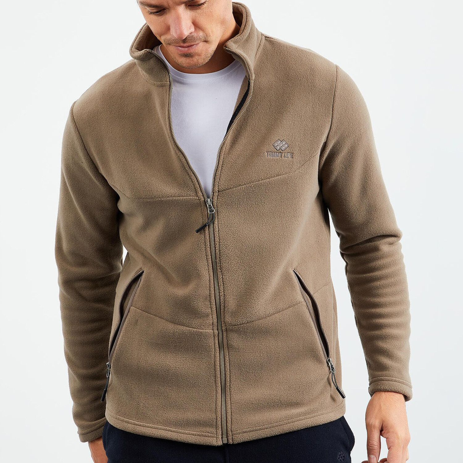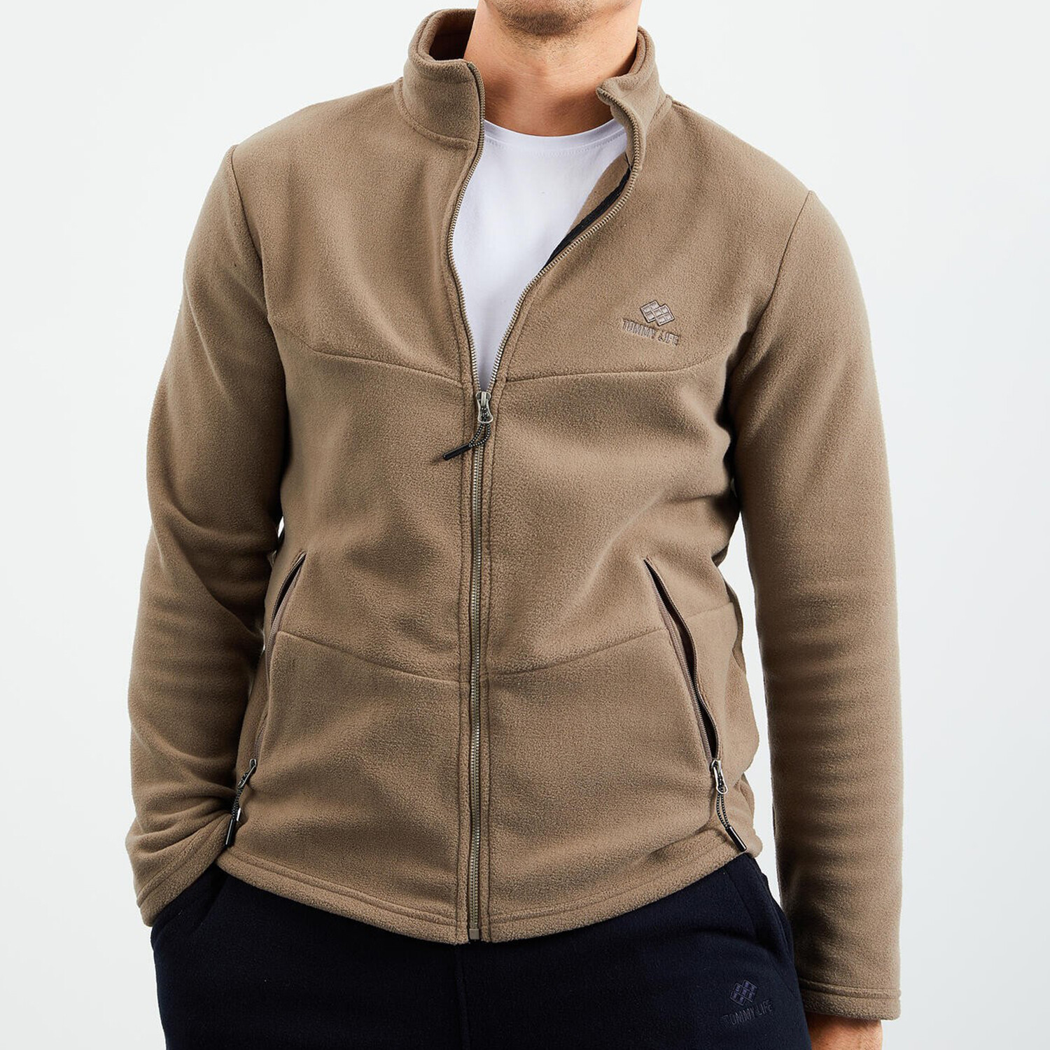 Men's Zip-Up Collared Polar Fleece Jacket // Camel