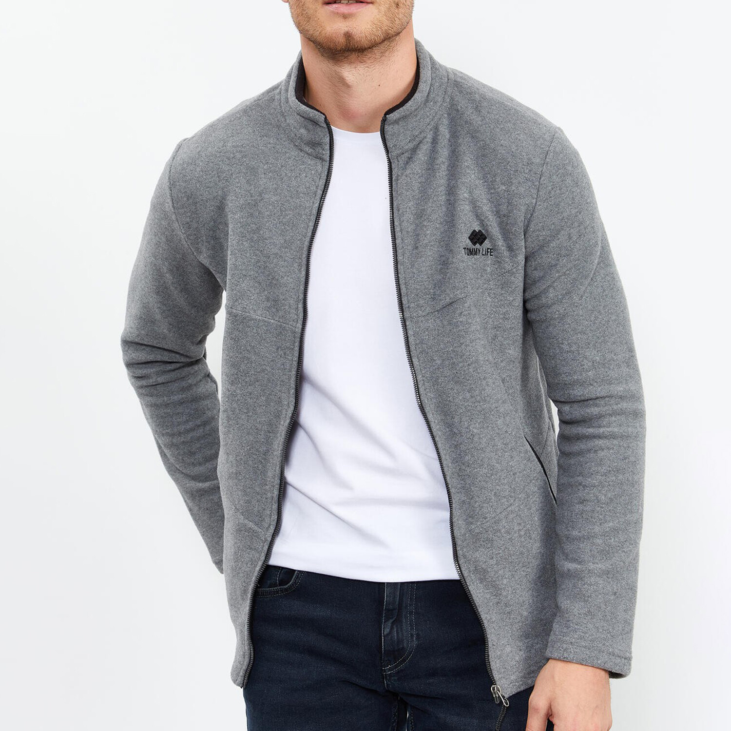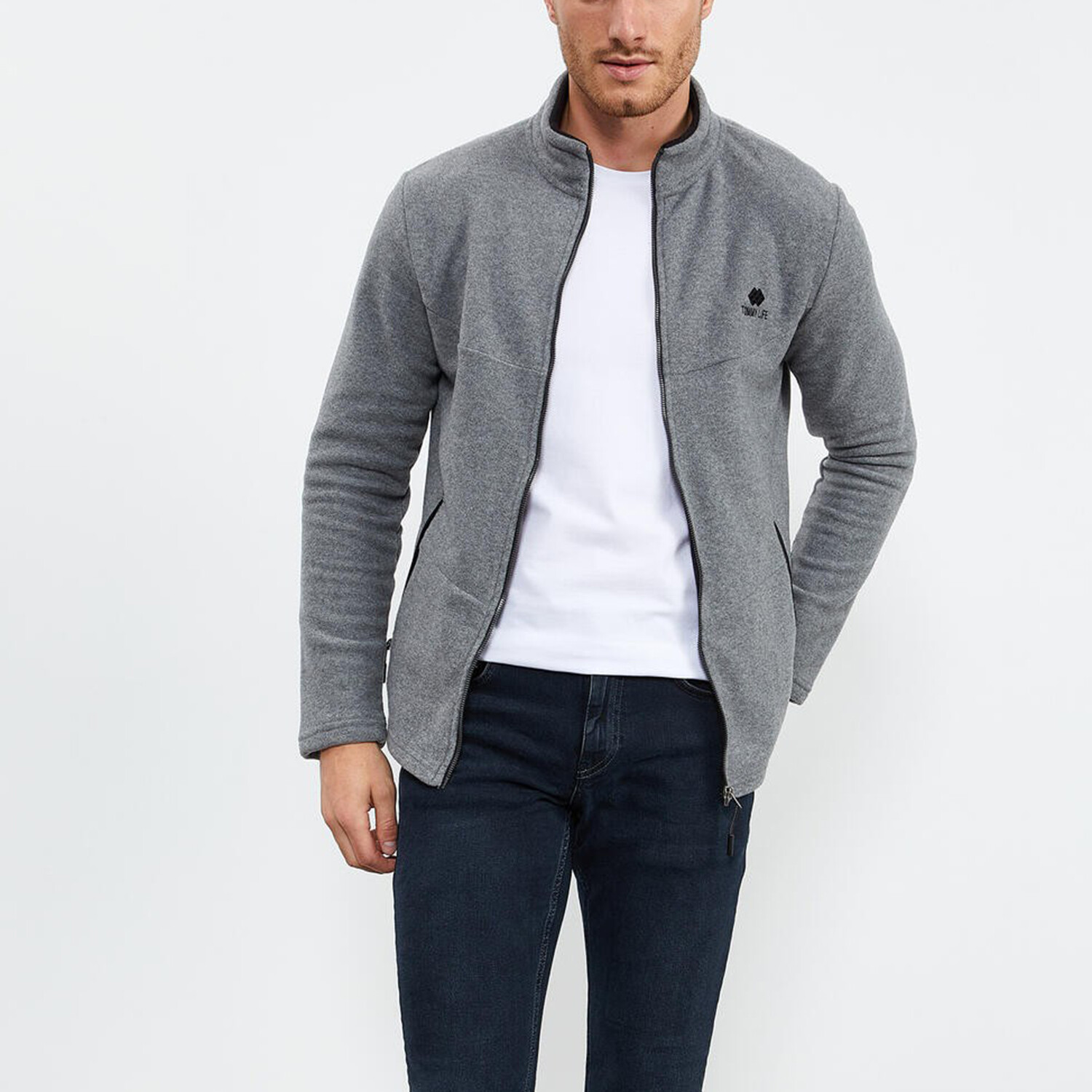 Men's Zip-Up Collared Polar Fleece Jacket // Gray Melange