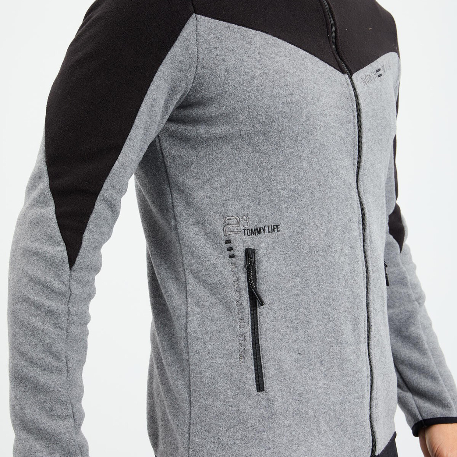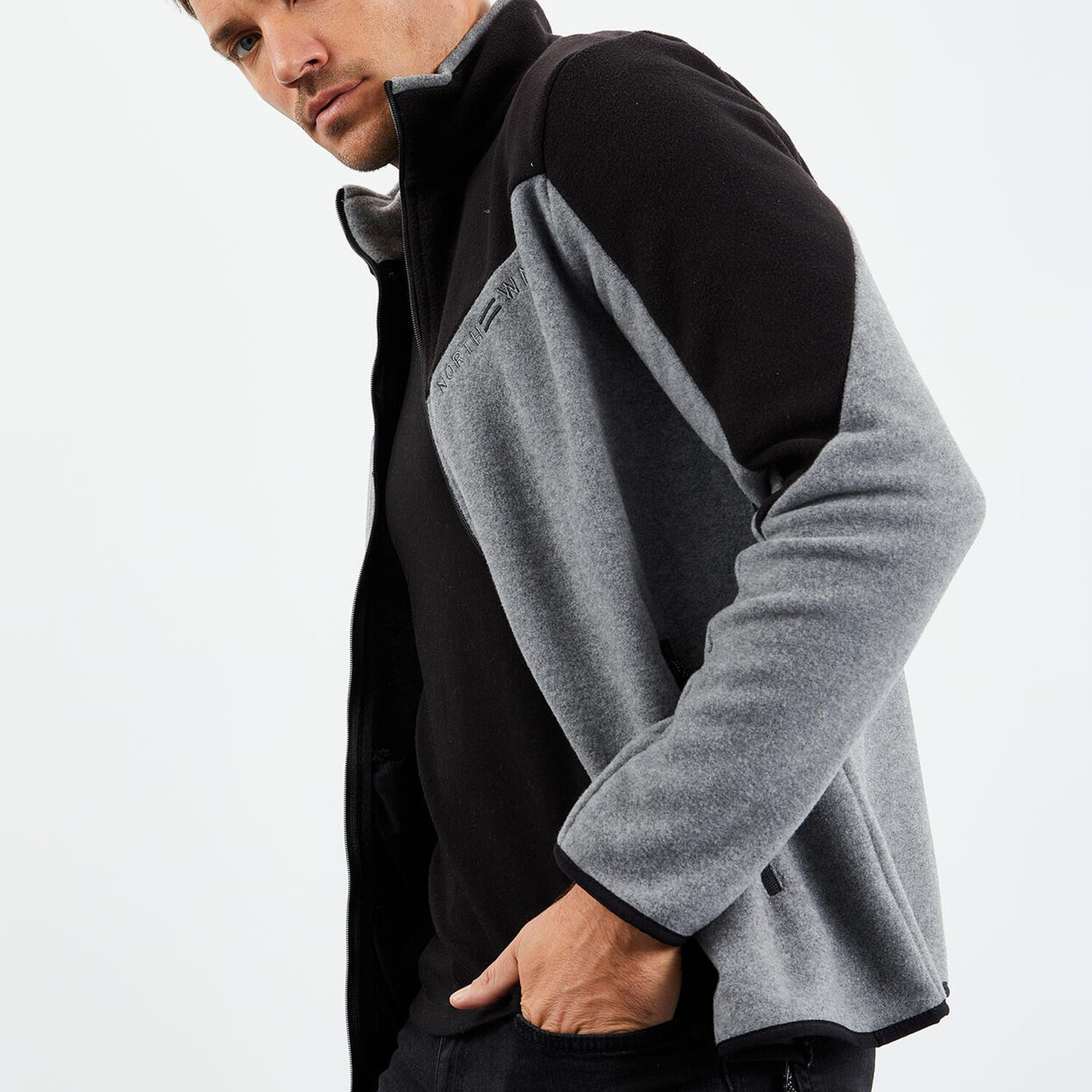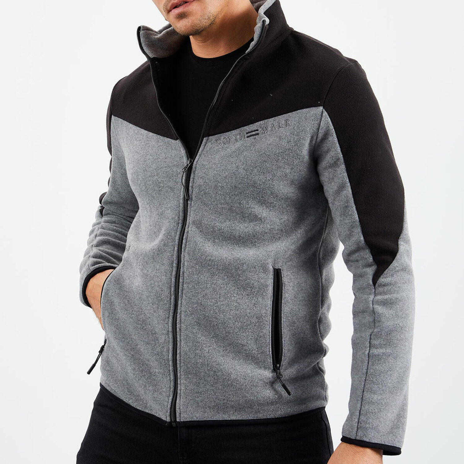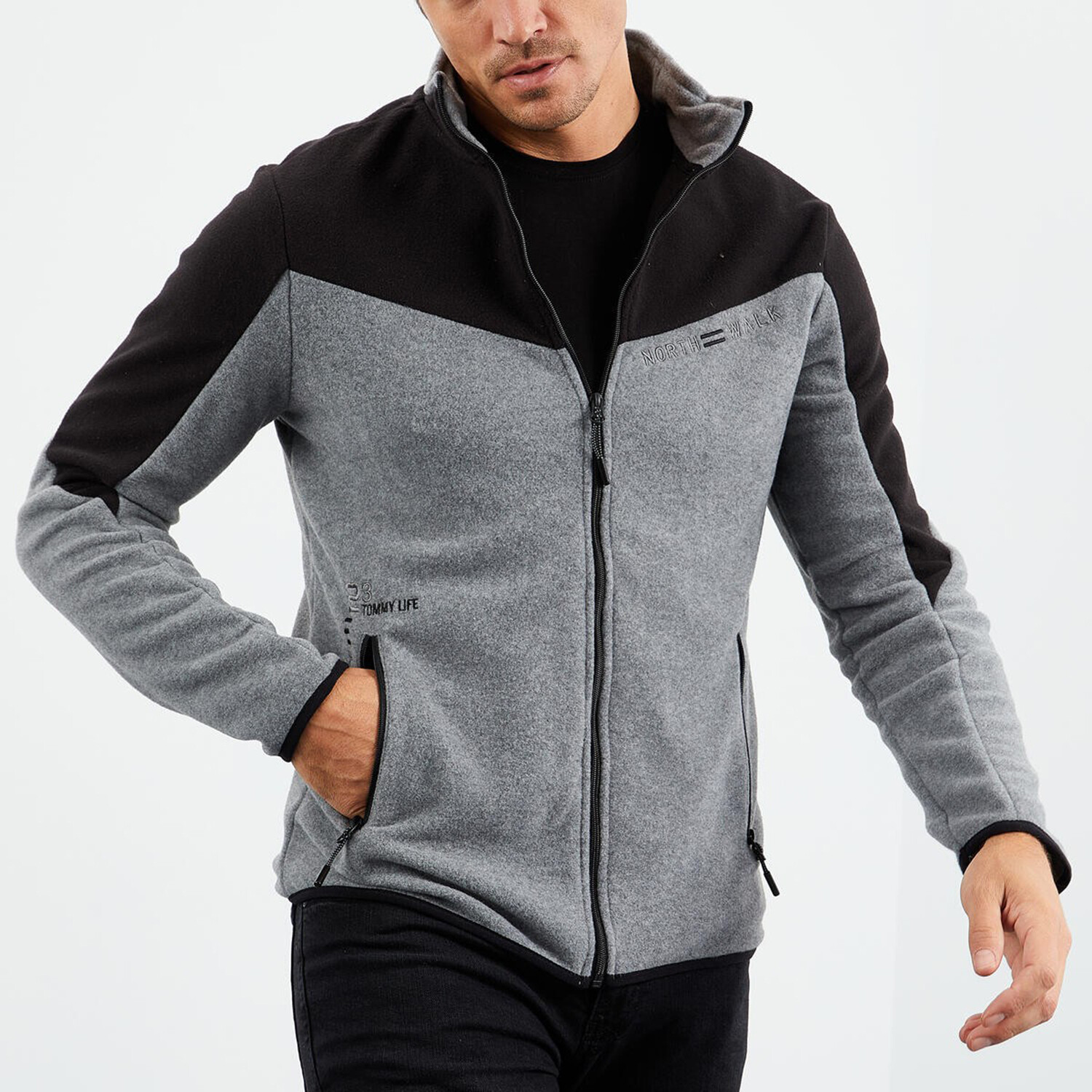 Men's Zip-Up Collared Polar Fleece Two-Tone Jacket // Black + Gray Melange