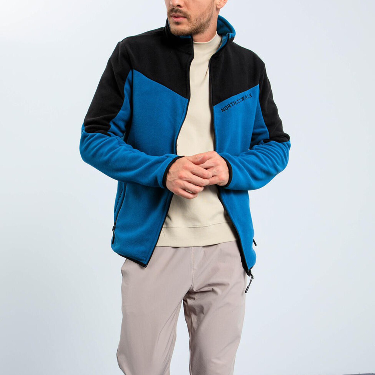 Men's Zip-Up Collared Polar Fleece Two-Tone Jacket // Emerald + Black
