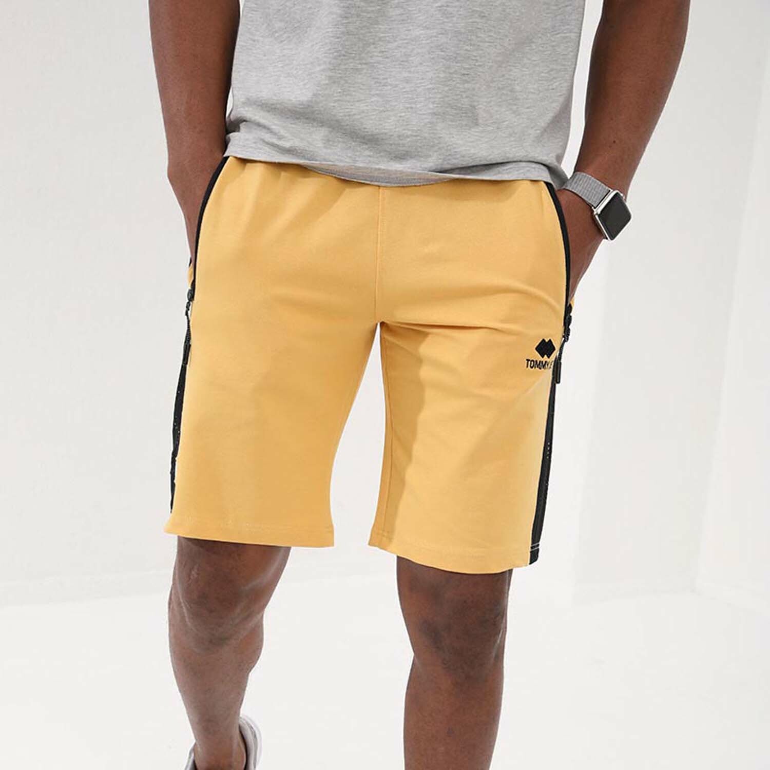 Isaac File Strip Detailed Zipper Pocket Shorts // Mustard