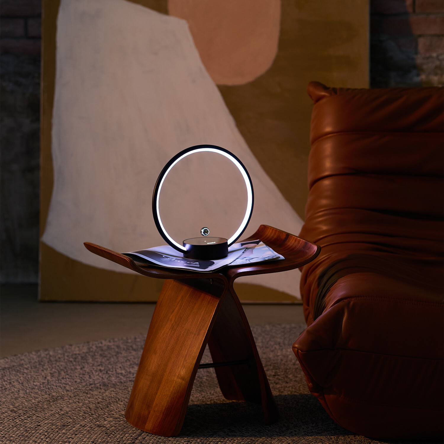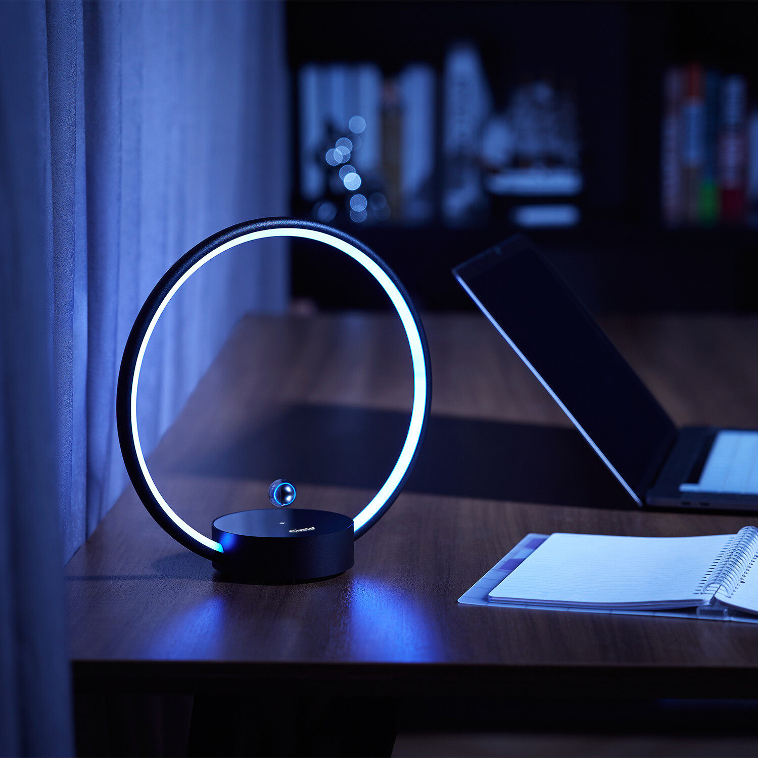 Simple, beautiful, and cutting-edge, CIRCLO is a remarkable LED lamp with an innovative Flyswitch that floats just like magic. This table-top lamp utilizes patented electromagnetic technology to keep the switch suspended in mid air. Press this floating switch to turn the light on or off and trigger different preset light modes. Enjoy the normal light mode with 1000 lumens of bright white light, or switch to the RGB Mood Light to cycle through a range of colors. This mood light mode can loop through all the colors or be set to stay on a specific color to enhance the atmosphere of your space according to your need.