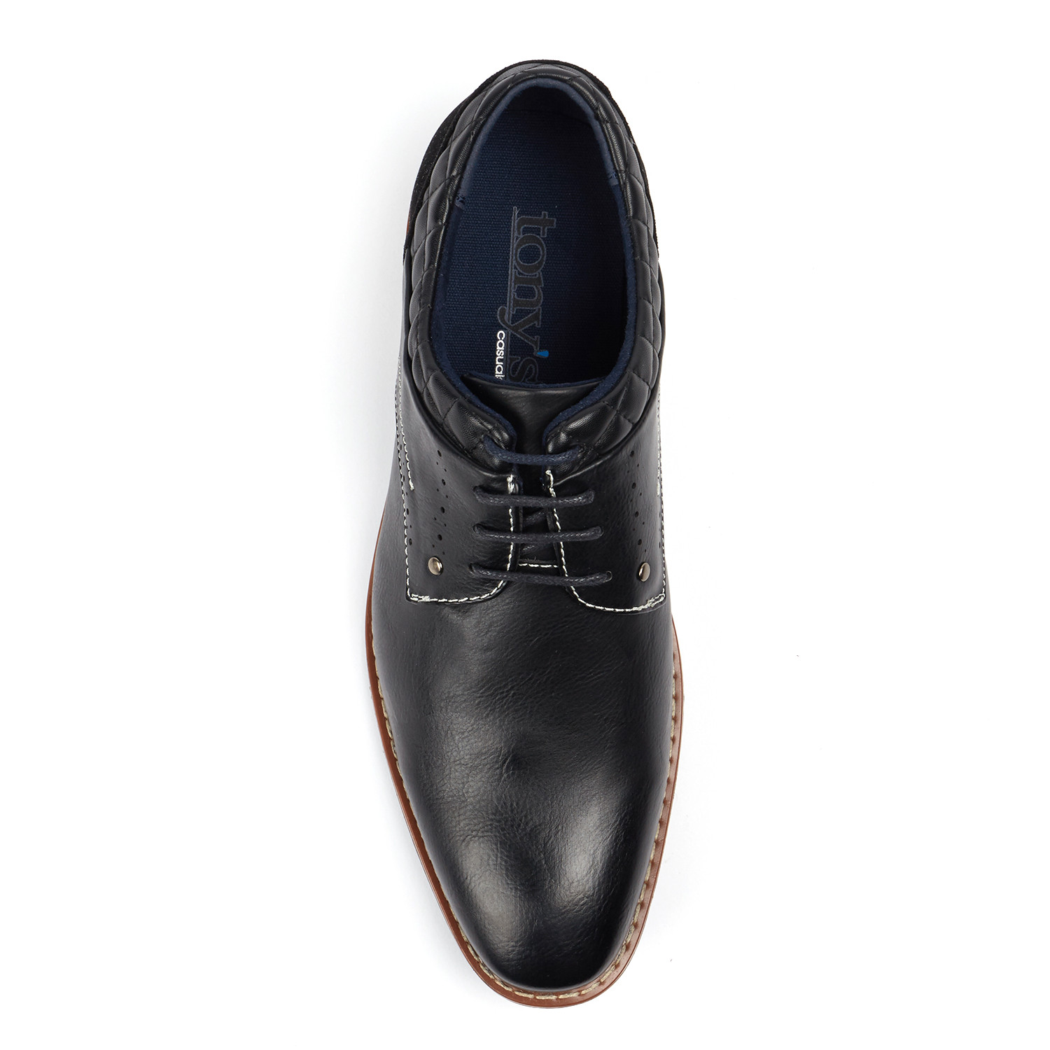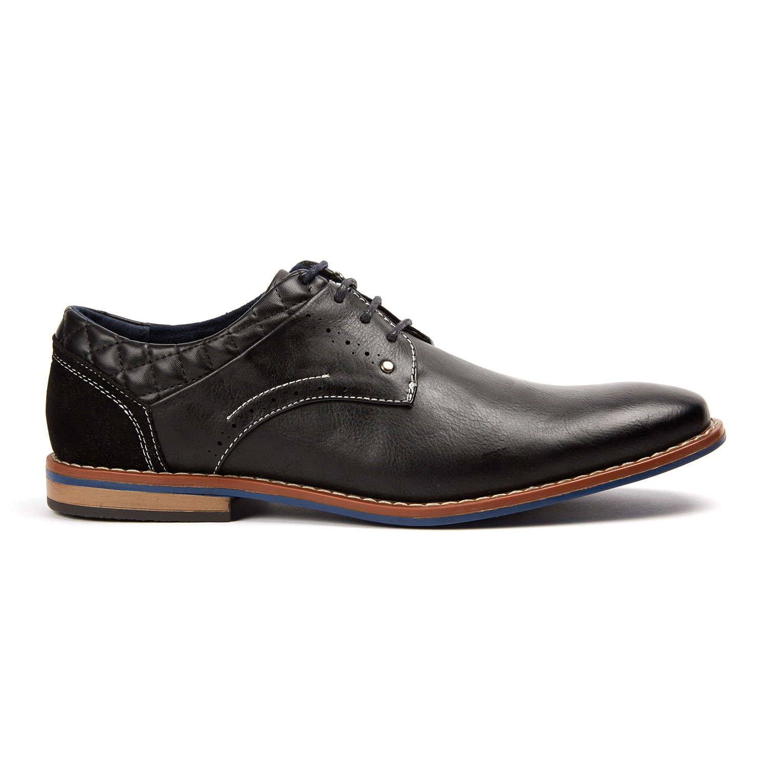 This Stitched Topline Derby combines decorative detailing with modern twists. Its perforated and riveted lace closure are offset by contrast stitching and a quilted collar.