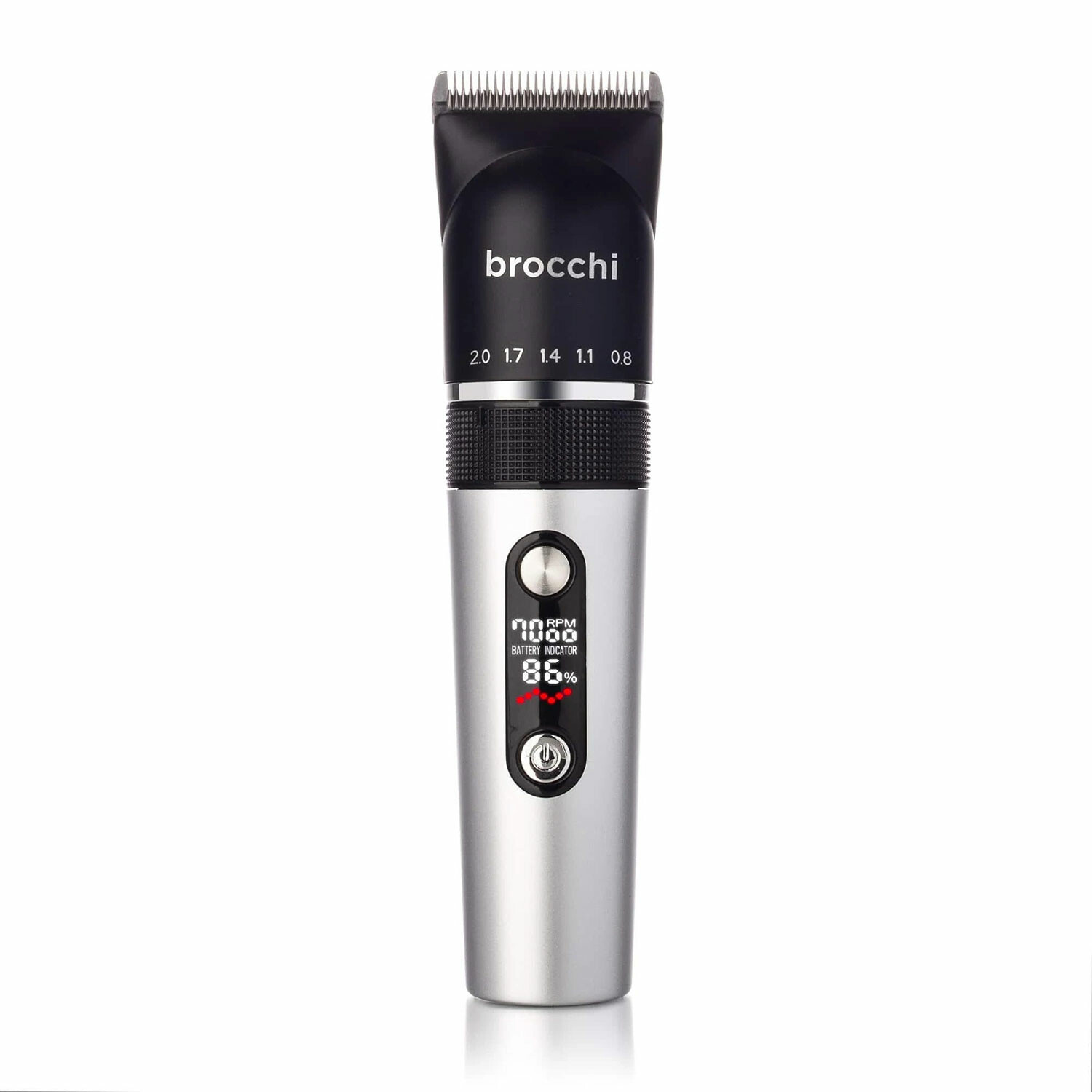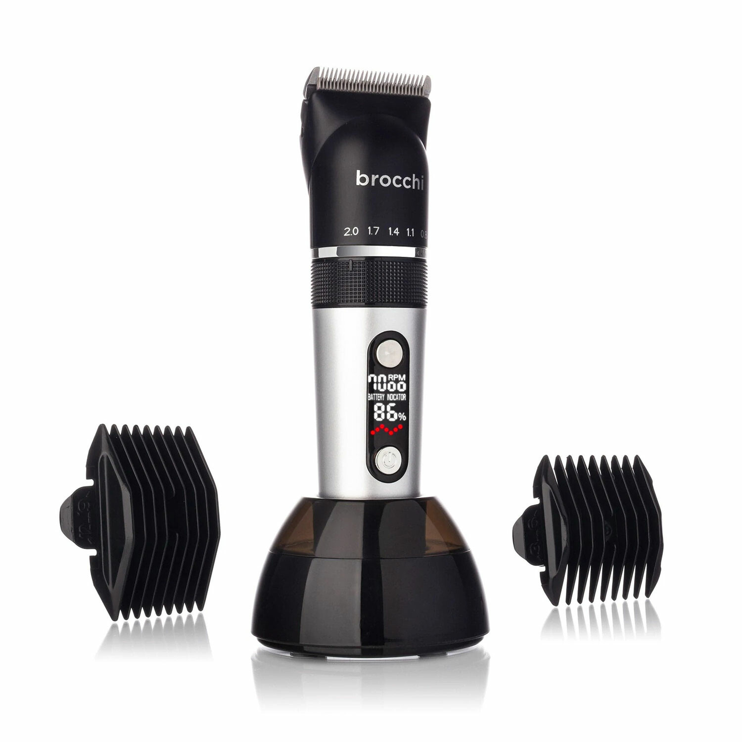 The Brocchi Clipper Pro digital trimmer is handy and functional when you're seeking a solution to your clipping challenges. The ceramic and titanium blade offers superior cutting performance, sharpness, and durability. This powerful clipper features three-speed settings for versatility and crystal-clear LCD for RPM and battery status display.