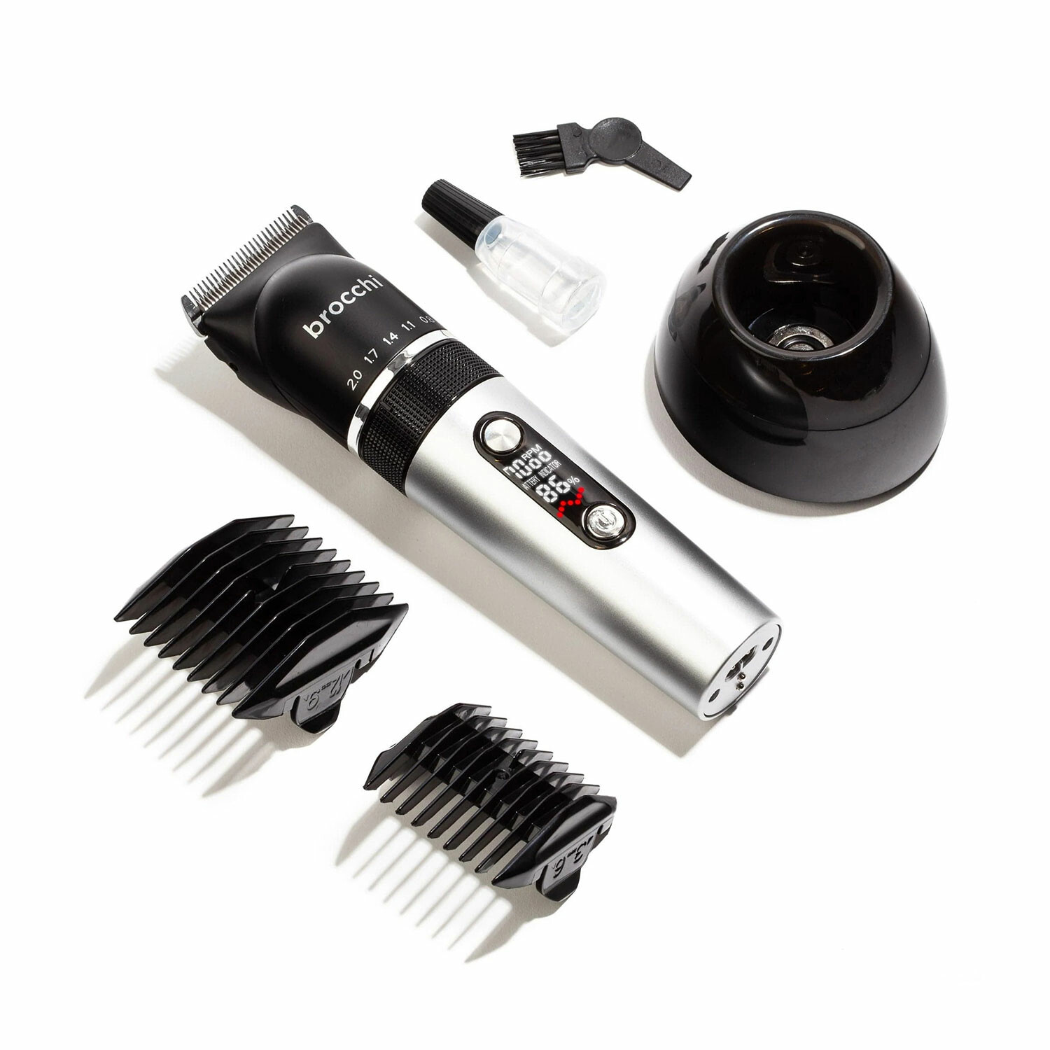 The ergonomic wheel switch can be used to select five adjustable length settings. With a contemporary charging base that allows safe and stylish storage of your device in an upright and ready to go position, the charging is not only effortless but polished too. The quick and efficient Brocchi Clipper Pro is the perfect tool for an incredible grooming experience.