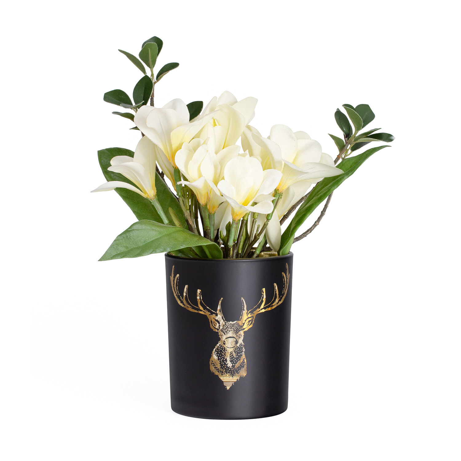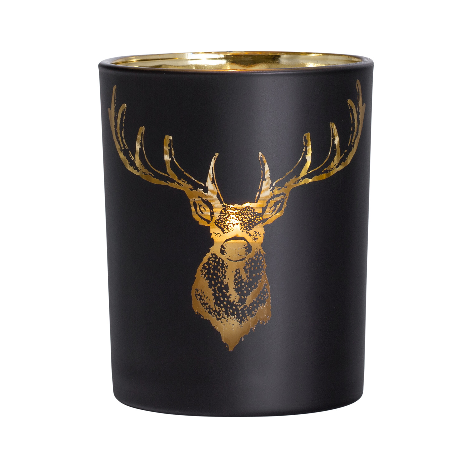 The Stag Gold Mirrored Glass Vase brings the timeless elegance of black and gold together with the iconic silhouette of the noble stag. This piece is the perfect accent to any home or office and makes a great addition to your holiday decorations. Place it on a shelf or table and fill with a pre-potted plant or florals for a lively display, or add ambience to your room with a candle or LED lights.