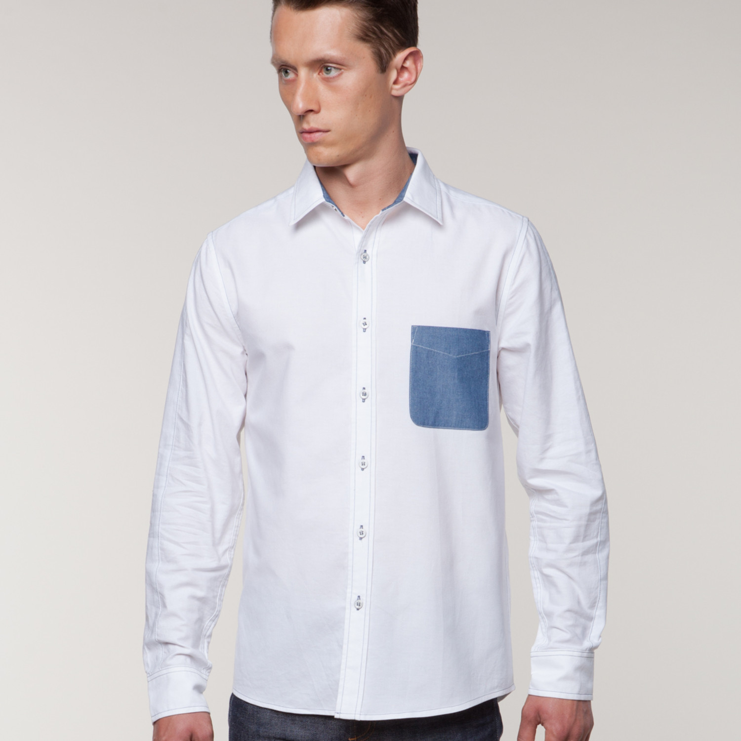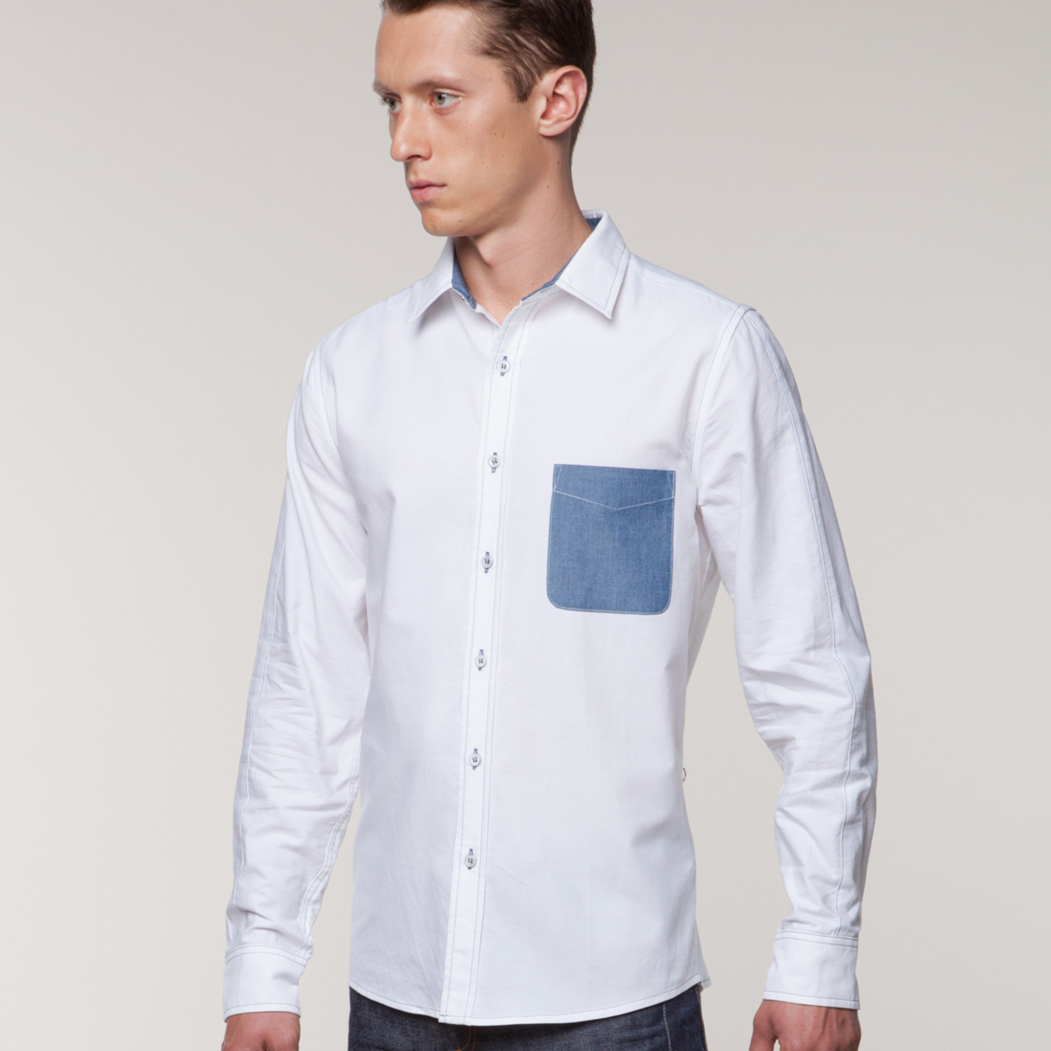 This lightweight oxford features a stylish front contrast pocket. With its fresh, clean color and 100% cotton material, you'll have a variety of options to dress this shirt up or down.