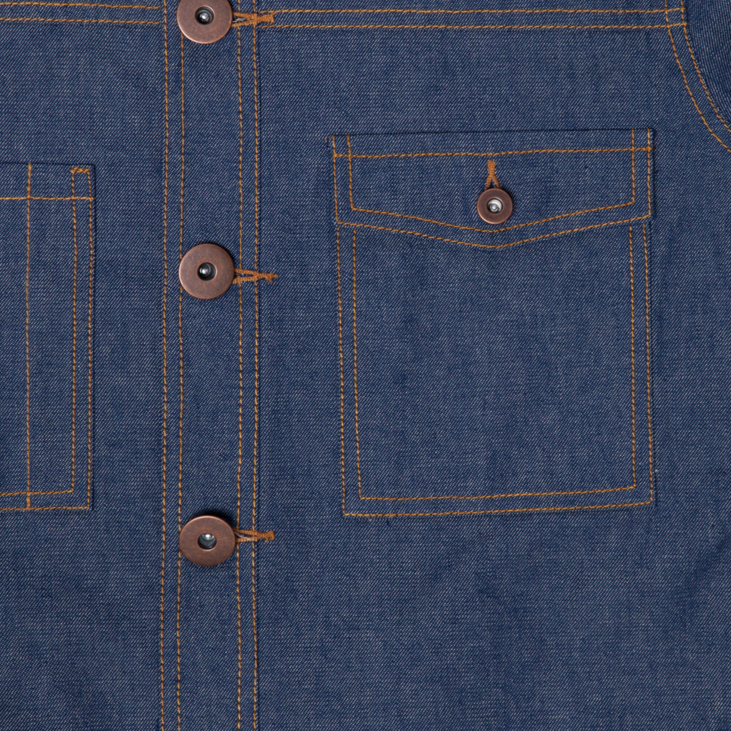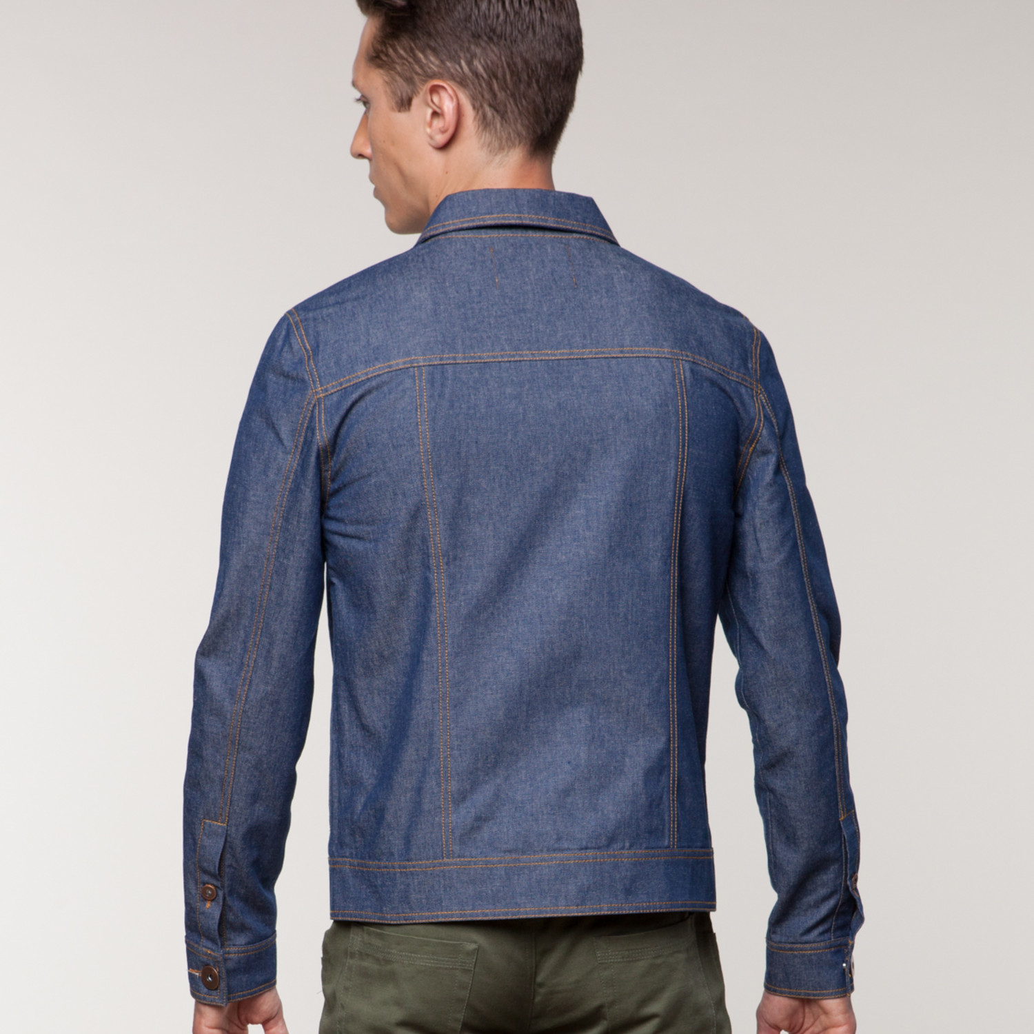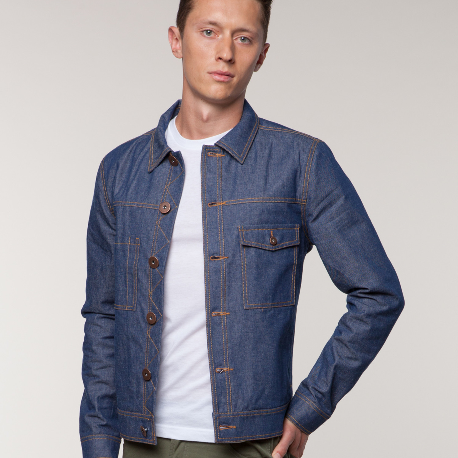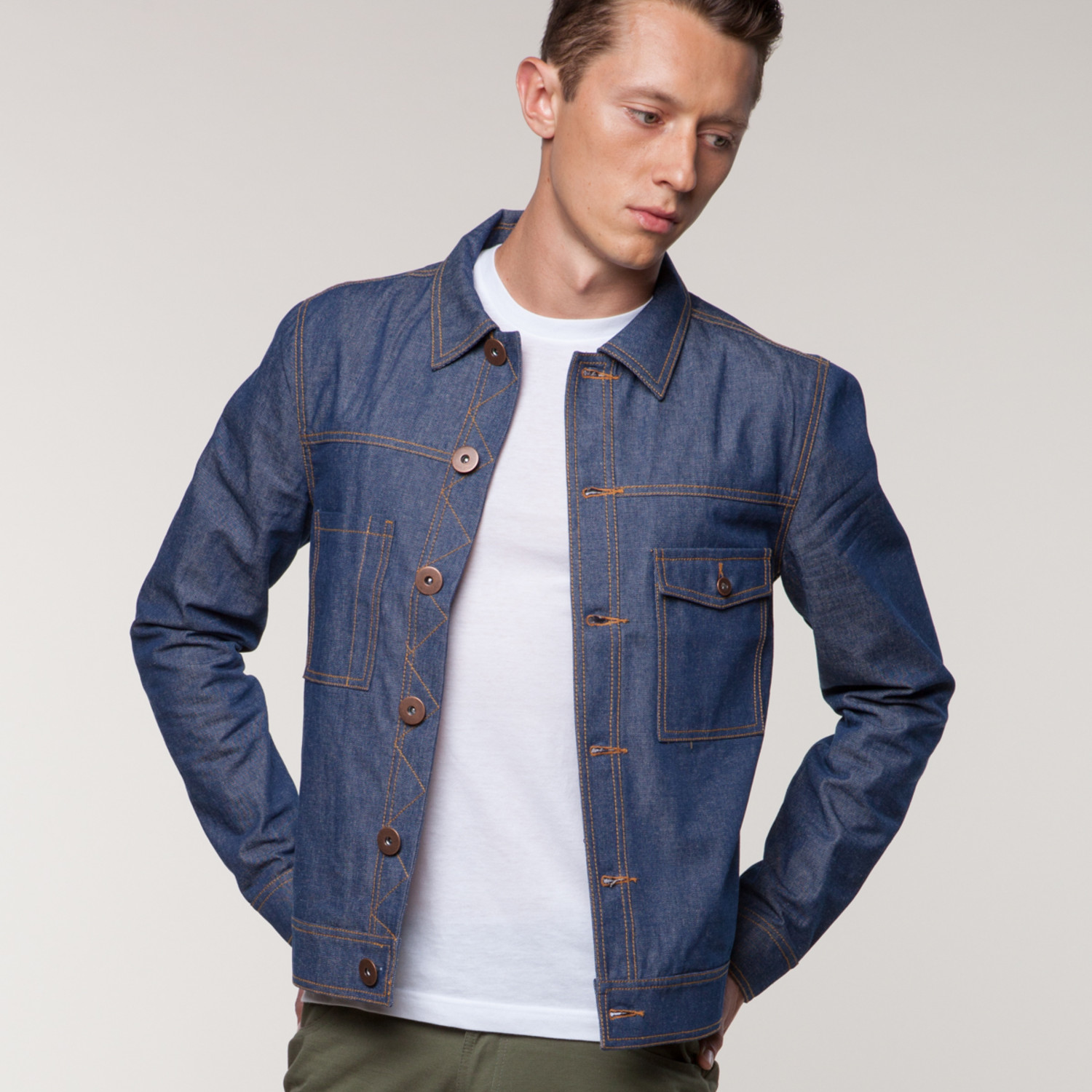 This classic denim jacket is updated with a perfectly fitting shape and eye-catching brown stitching. This jacket looks amazing with a plain white t-shirt, slim-fit pants, and rugged leather boots.