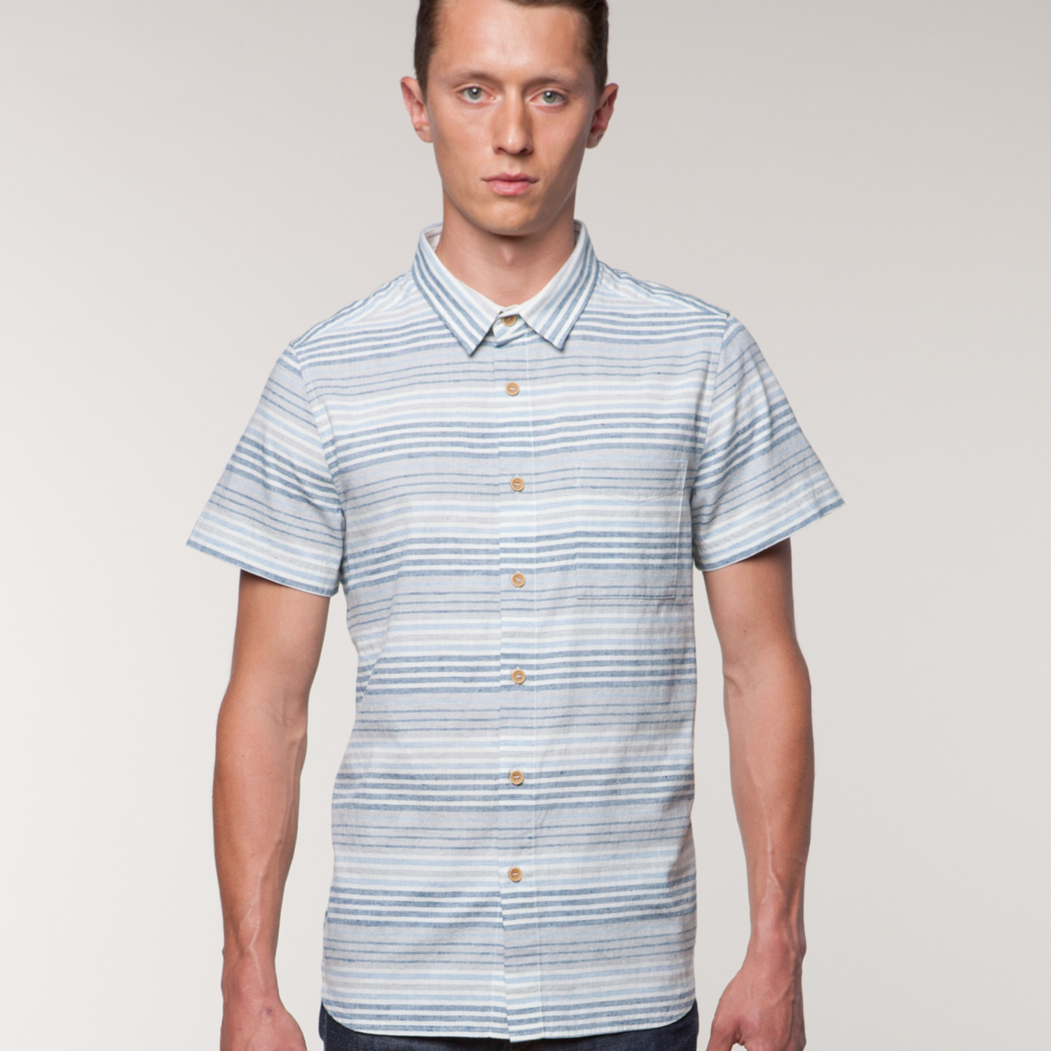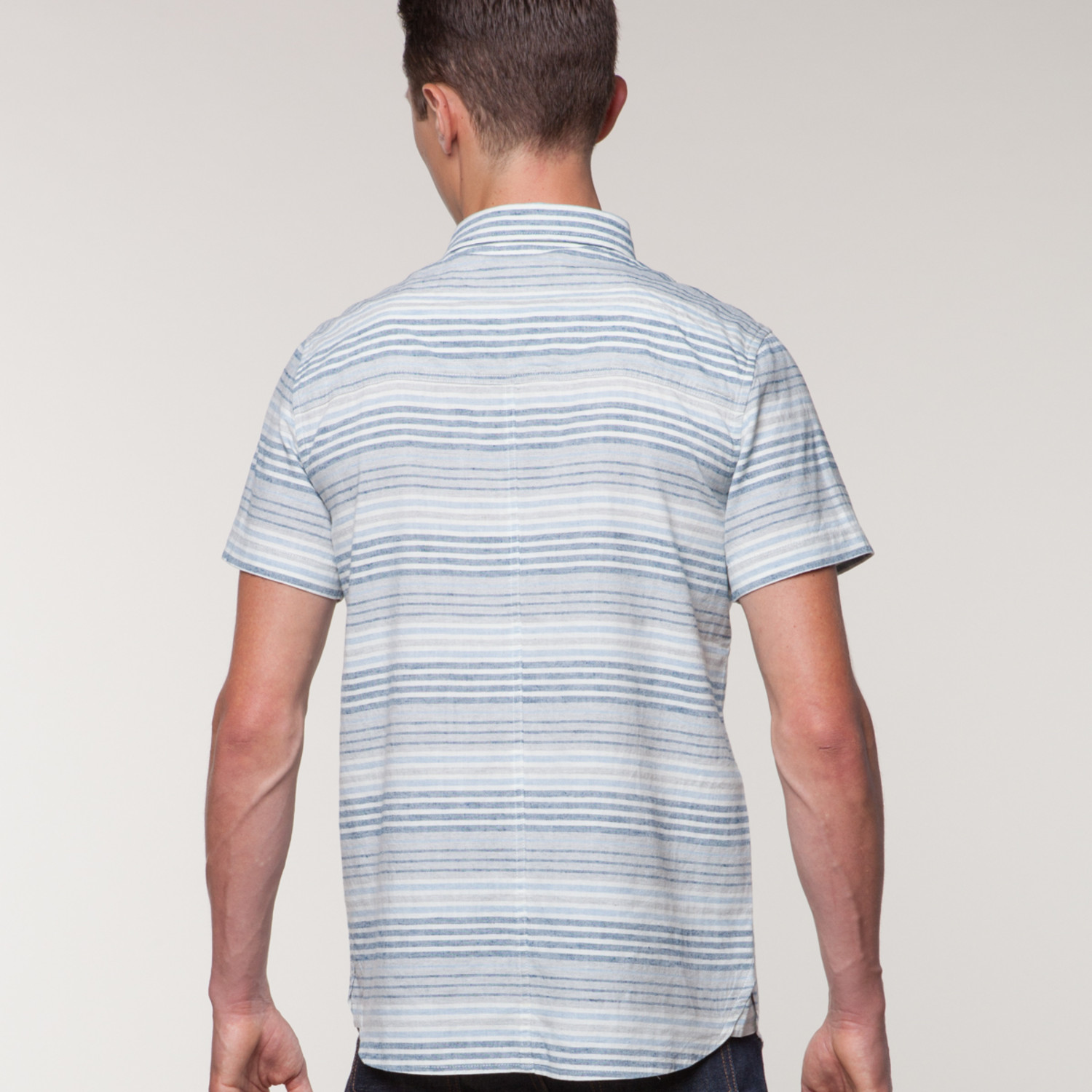 Tovar's short sleeve woven cotton stripe sport shirt is the perfect summer shirt. Designed with a vintage feel, this shirt works well at the beach or the office.