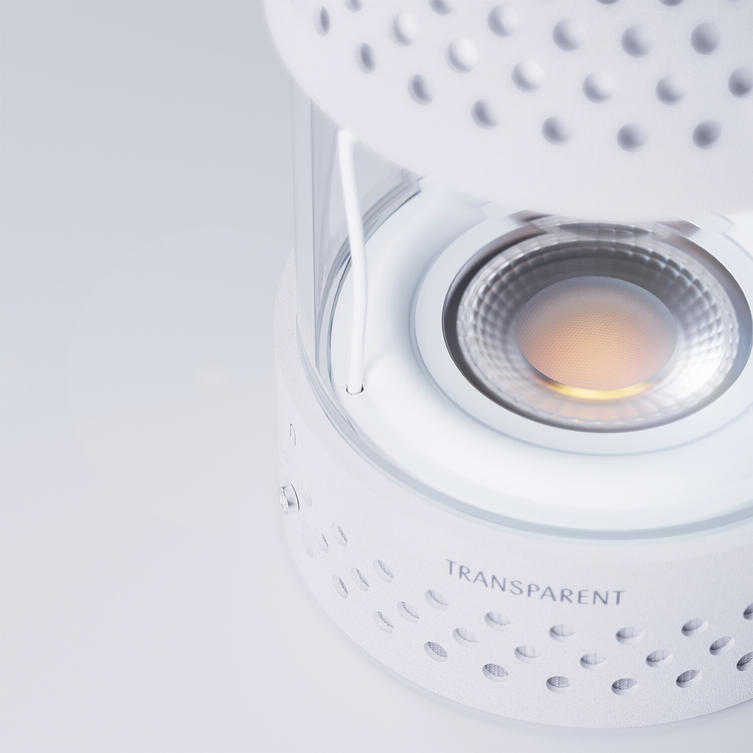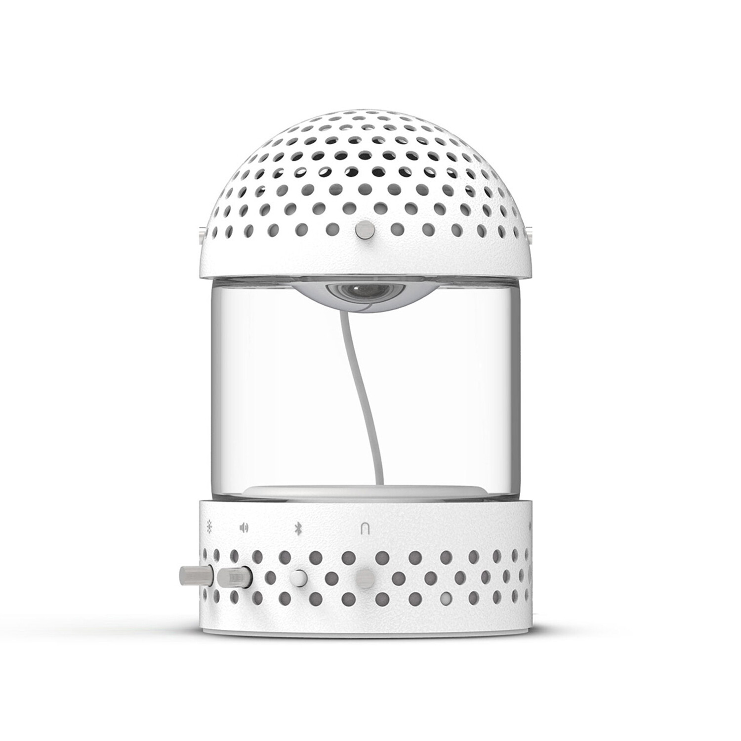 Light Speaker's lightweight aluminum build has been meticulously crafted to last a lifetime, and is finished with a custom borosilicate glass cylinder that beautifully diffuses the light throughout your space. The IPX2 waster resistance rating means you can safely bring it outdoors and take the party on the road. It’s a statement of timeless, functional, and modular electronics that blends into any environment.