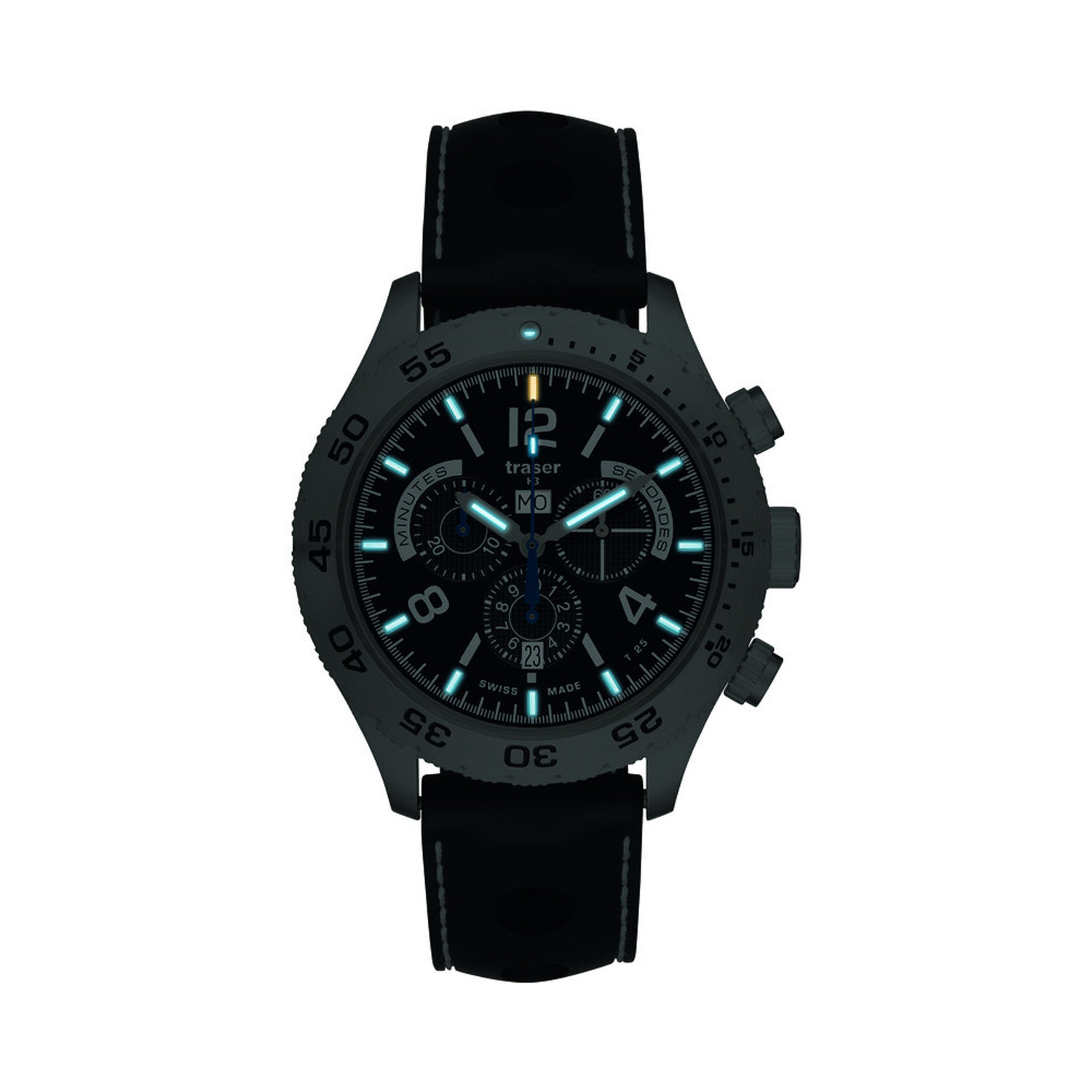 The hands and markers are illuminated by tritium glow tubes by traser's proprietary trigalight technology, which works independently of a battery or any other source of outside energy, its lights never need recharging or servicing, and glow automatically in low light or complete darkness, and last for up to 25 years.