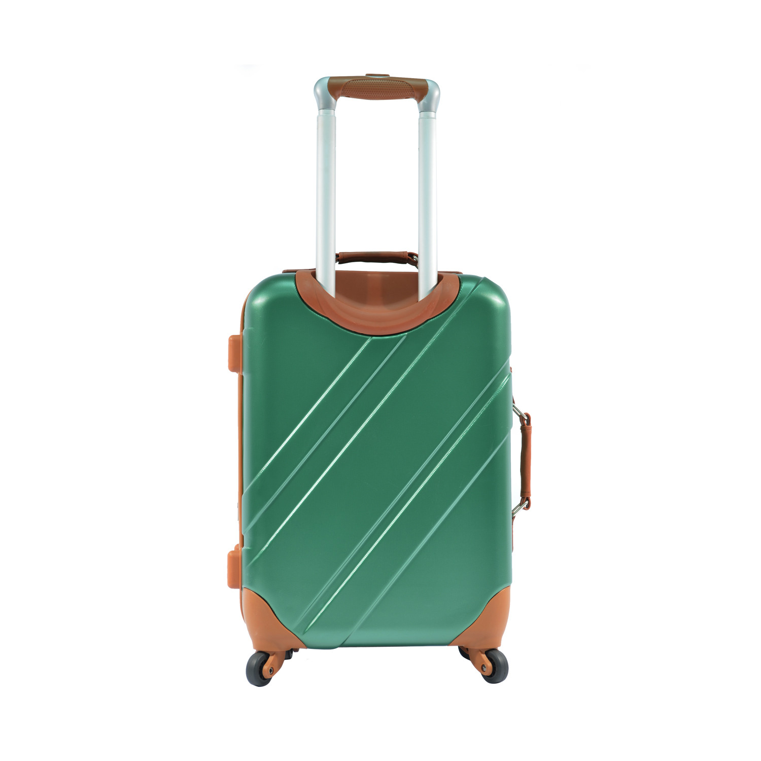 Head to the bright lights and big city with this classic, spinner style. It's a hard sided case with faux leather trim—it's remarkably impact-resistant and expandable. This piece has a large main compartment with four interior, zippered pockets and a push button handle system.
