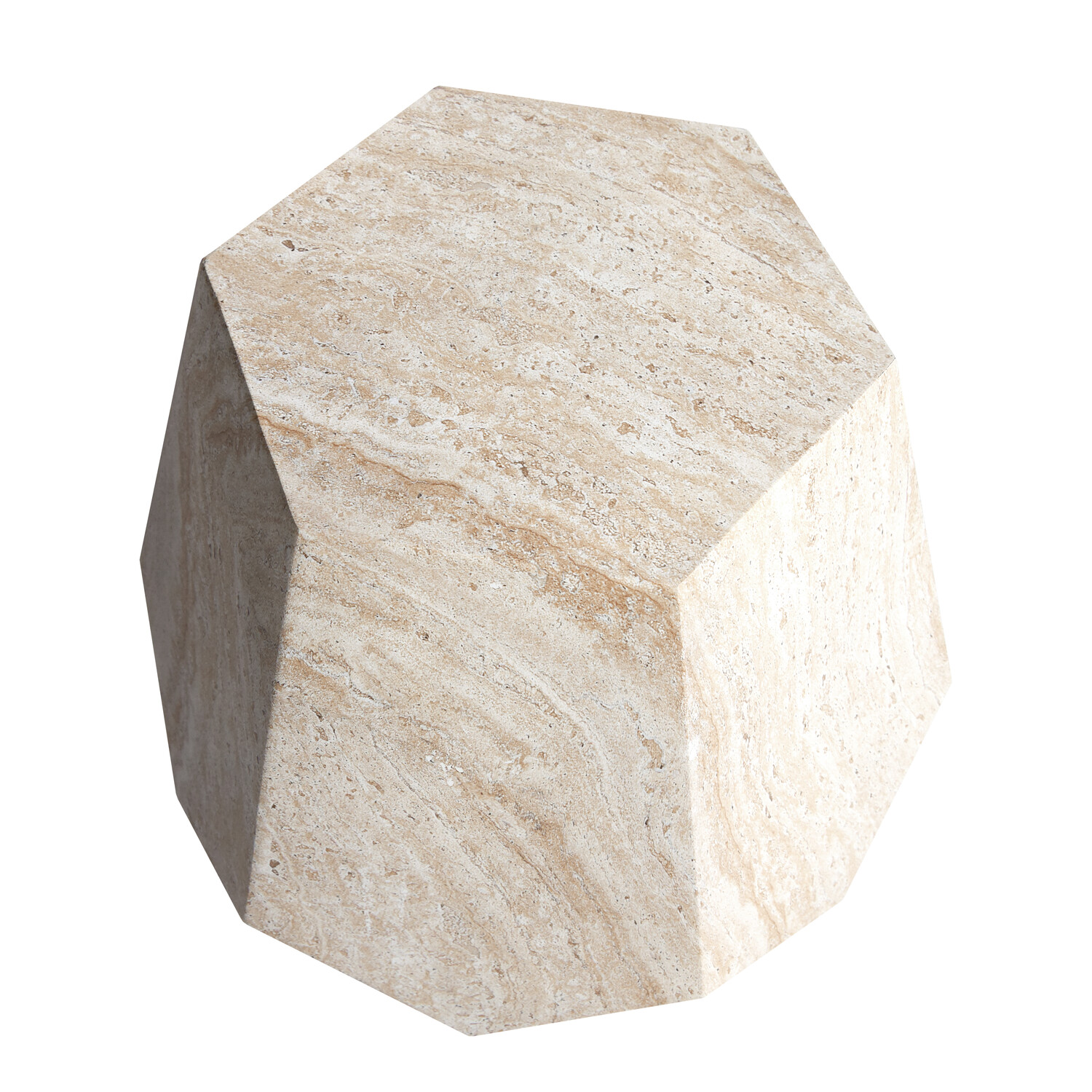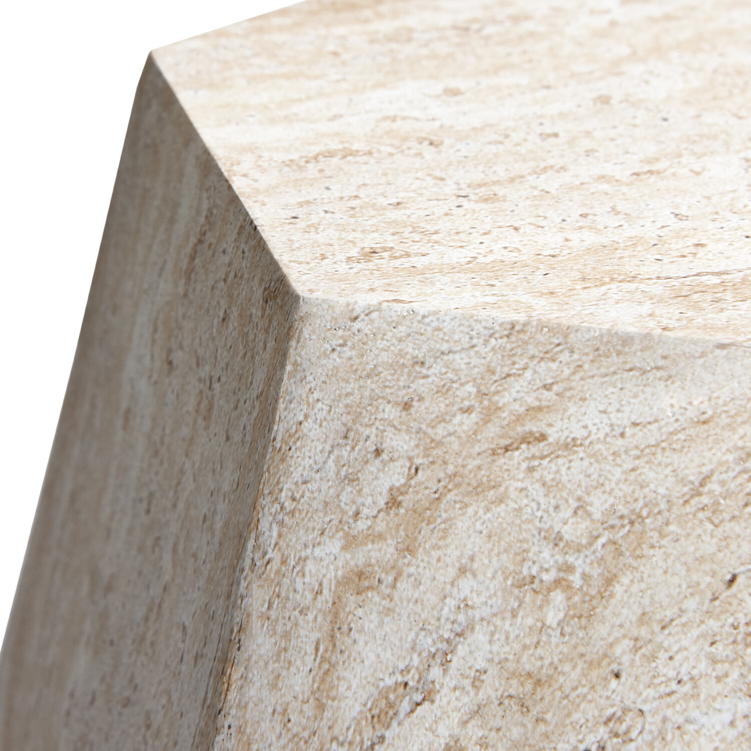 Geaometric Travertine Stone Finish Italian Design MgO Side Accent Table