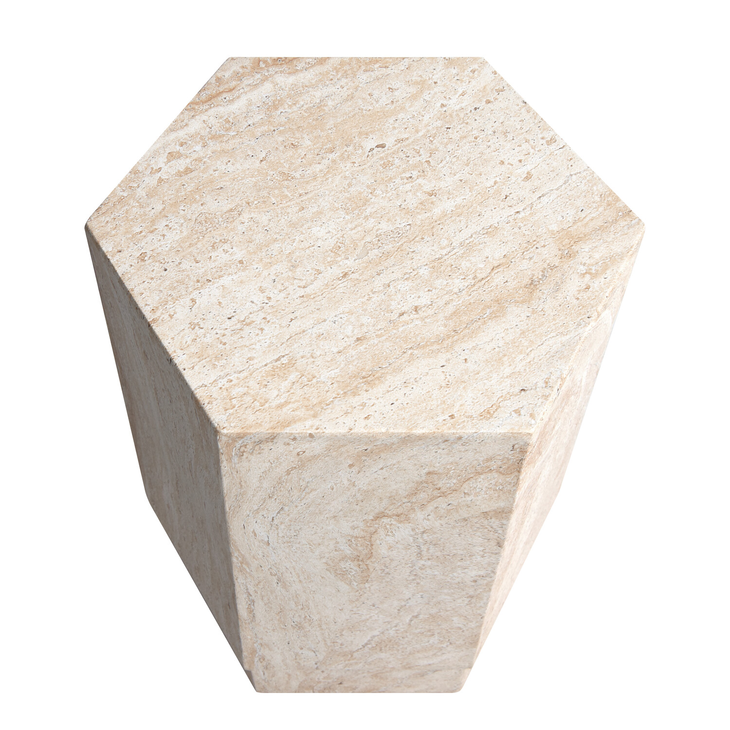 Hexagonal Travertine Stone Finish Italian Design MgO Side Accent Table