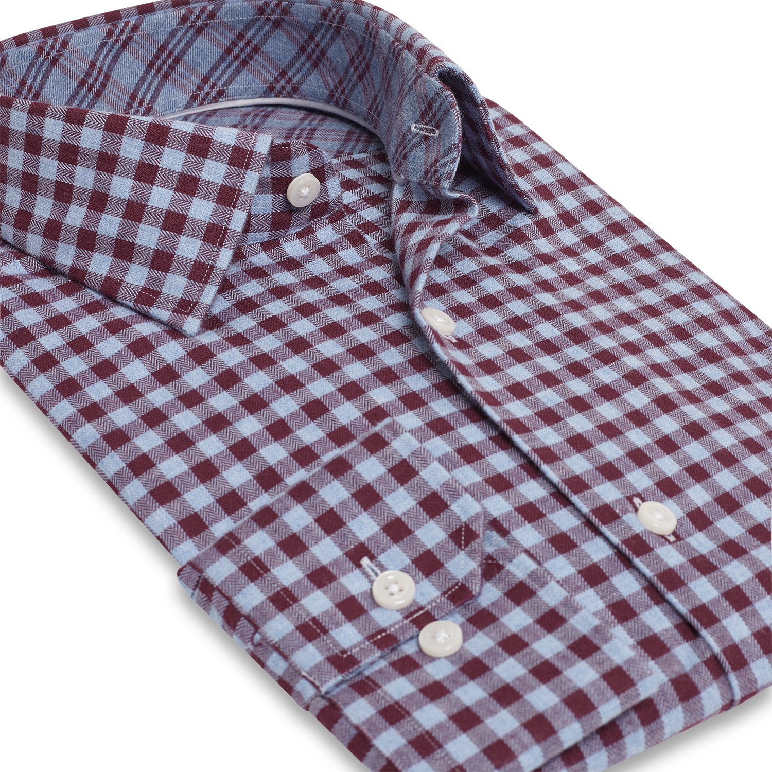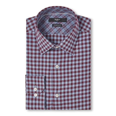 Contemporary Fit Flannel Check Men's Dress Shirt // Oxblood + Blue