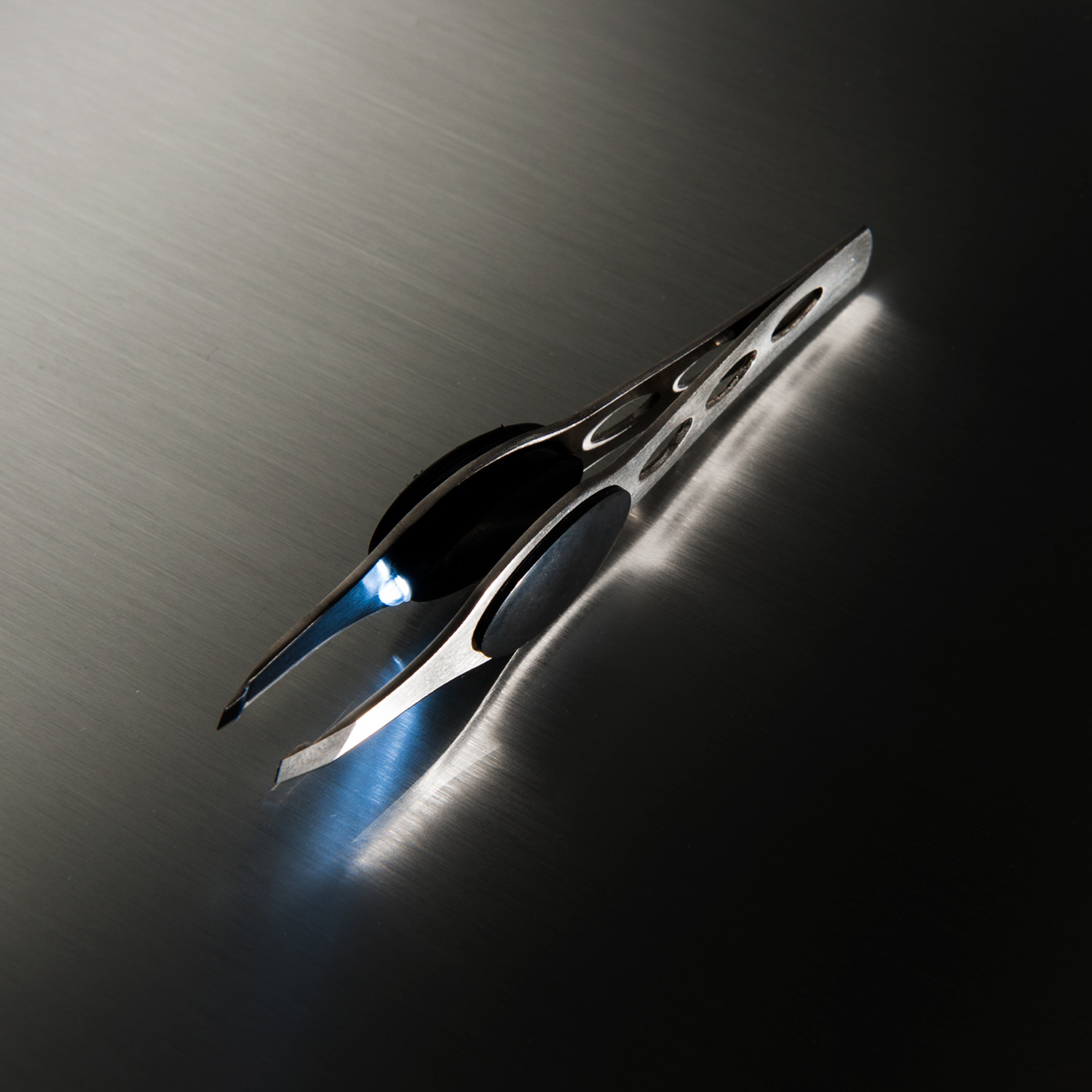 This black tweezer is made of durable stainless steel material and has patented LED lighting for a closer tweeze and a preloaded waterproof battery. This unusual tweezer has a classic slant tip and comes with a gift box with a mirrored case to keep your brows groomed even on the go.