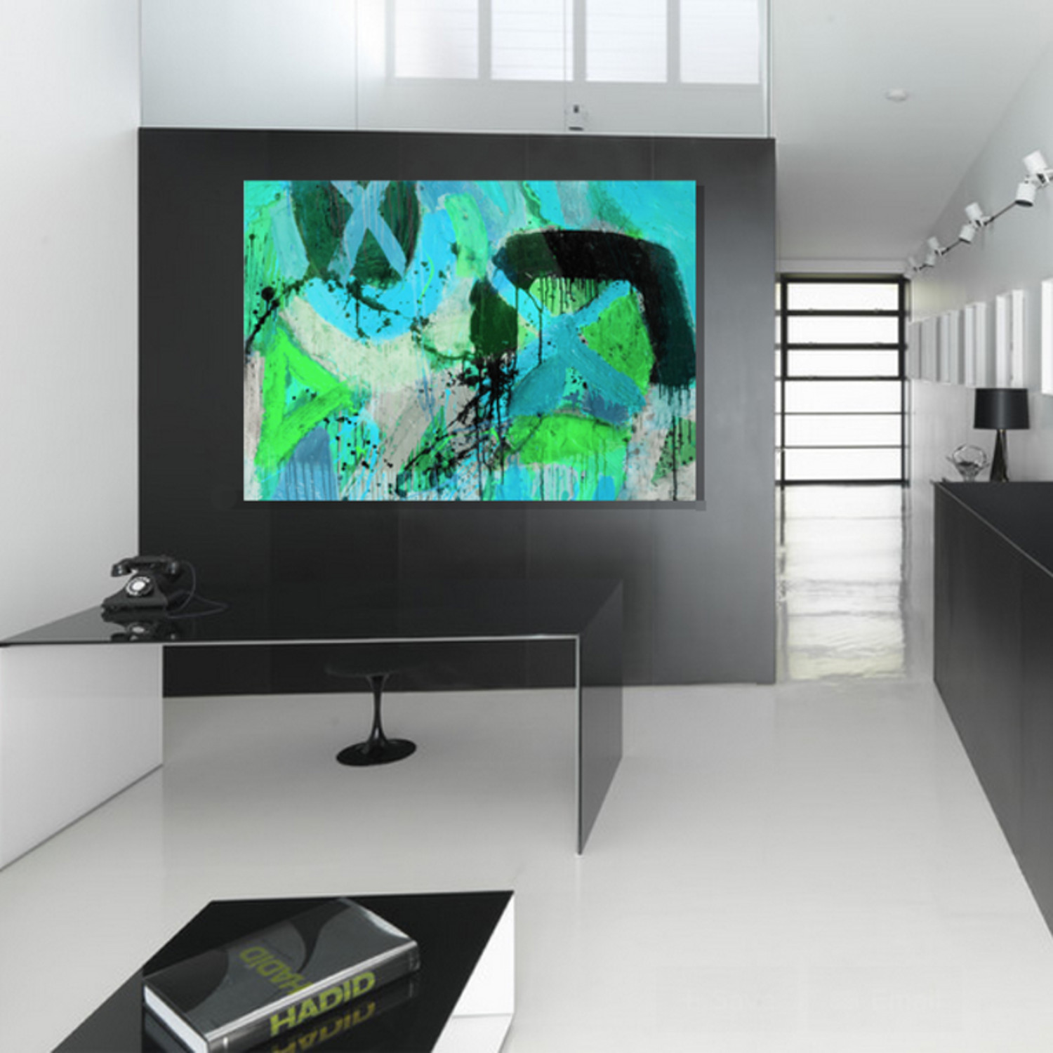 X marks the spot, with several spots worth noting. With its clever use of color, light and texture, Tribeca Studios NYC brings you another stunning abstract art piece in Silver Lake. This mesmerizing canvas print will add a sophisticated splash of color and style statement to any room. The original artwork is professionally printed on 100% cotton canvas, then stretched and wrapped around a 38 mm wooden frame, making it arrive ready for hanging.