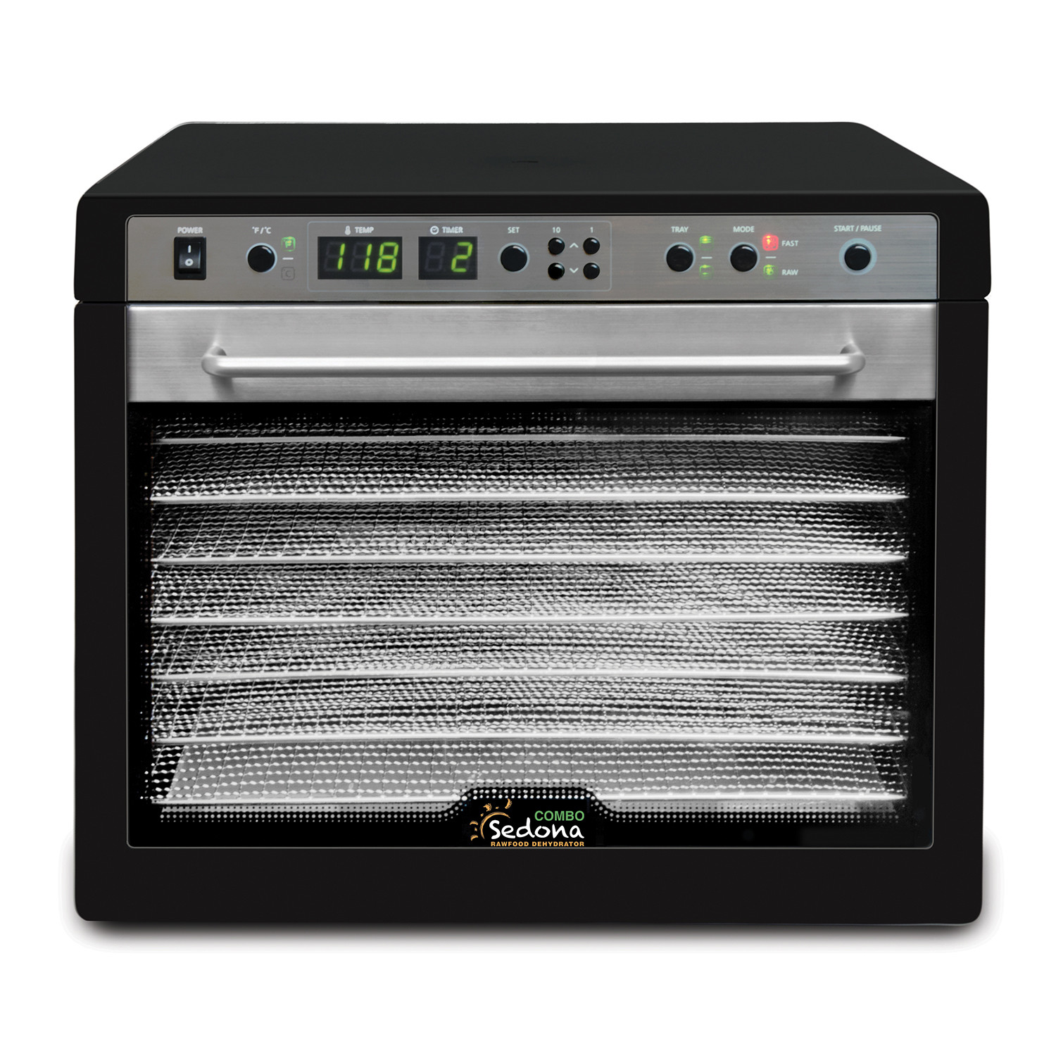 The Sedona Combo Food Dehydrator comes packed with outstanding features like the digital thermostat, dual fan technology, stainless steel handle, and a transparent glass window. These features combine to offer unparalleled control and whisper-quiet operation. With the revolutionary Two-Stage Sequential Temperature Timer (TST), even more control is at your fingertips. The TST allows you to set the Sedona Combo to kickstart the dehydration process at a higher temperature and then automatically lower the temperature to finish off the dehydration process. The automatic settings of the TST allow for faster dehydration times while still preserving your precious enzymes.