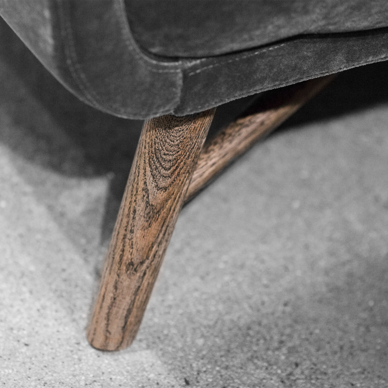 This delicate and elegant sofa and chair take the very best of 1950s design and adds a contemporary vibe for a relevant sofa that looks wonderful in any space. Designed for looks but built for comfort, LULU features fine details all throughout its construction, such as the beautiful smoked oak wooden legs as they naturally complement the fabric.