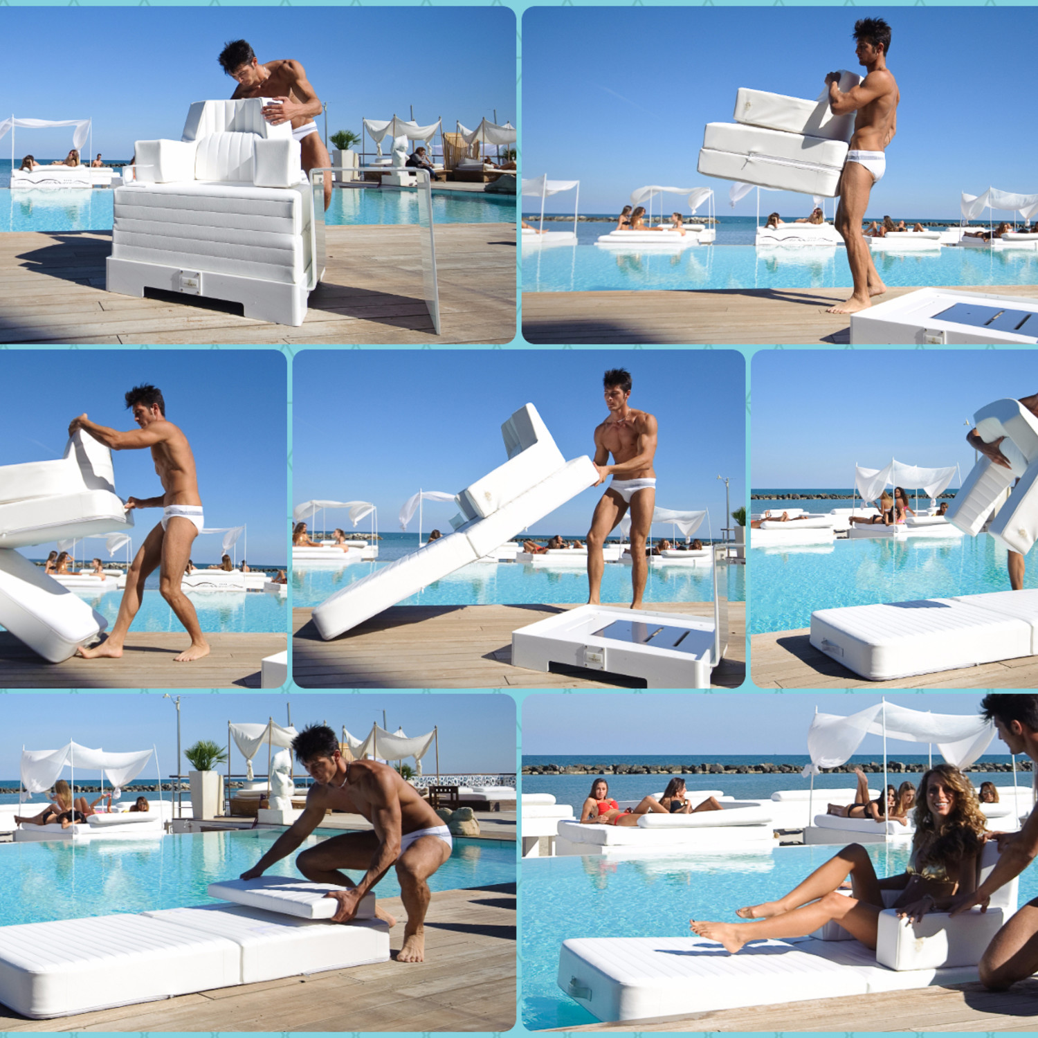 The Trona Armchair doubles as a luxury floating mattress. Opened, it is a comfortable and safe floating armchair. Closed on its plexi-base, it's an elegant piece of furniture customizable for indoor and outdoor spaces.