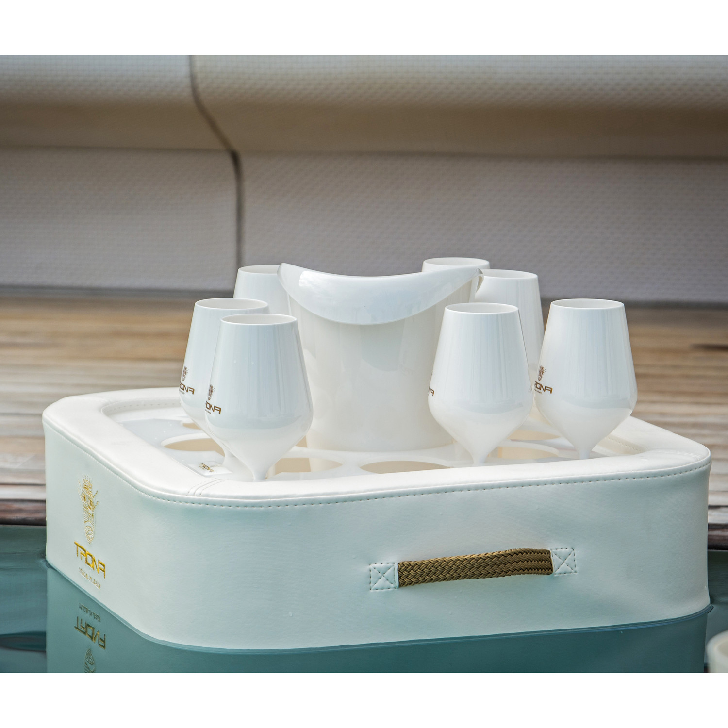 The Trona Floating Tray-Table is a small piece of luxury furniture designed for cocktail parties poolside or right in the pool. Thanks to its plexi-base, this floating tray holds bottle, ice-bucket and glasses and it keeps them safe without risk. It's ideal for both pools and hot tubs.