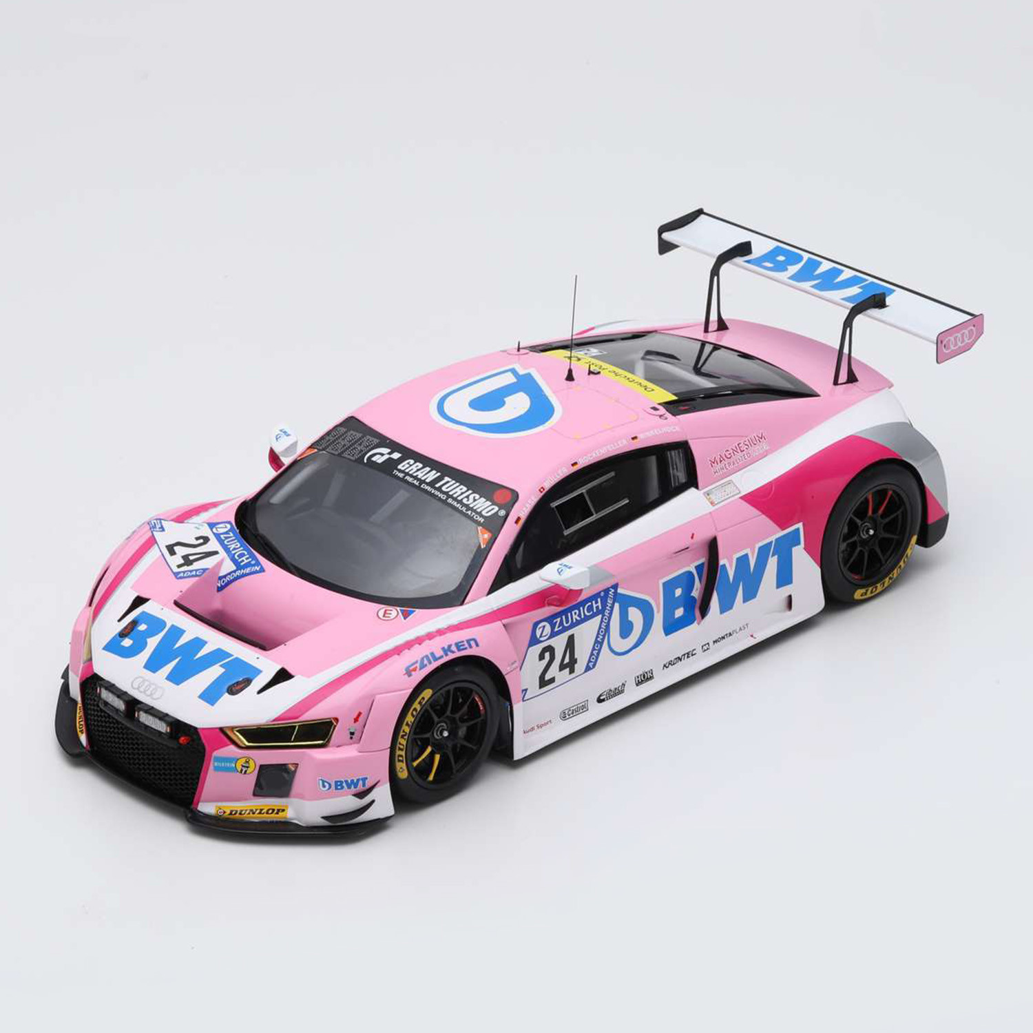 A beautifully replicated 1:18 scale resin model of the BWT sponsored #24 Audi R8 LMS car that was entered into the 2018 24 Hours of Nurburgring. This model features a highly accurate replication of the body design, a perfect application of the race livery exterior and fully detailed race interior.