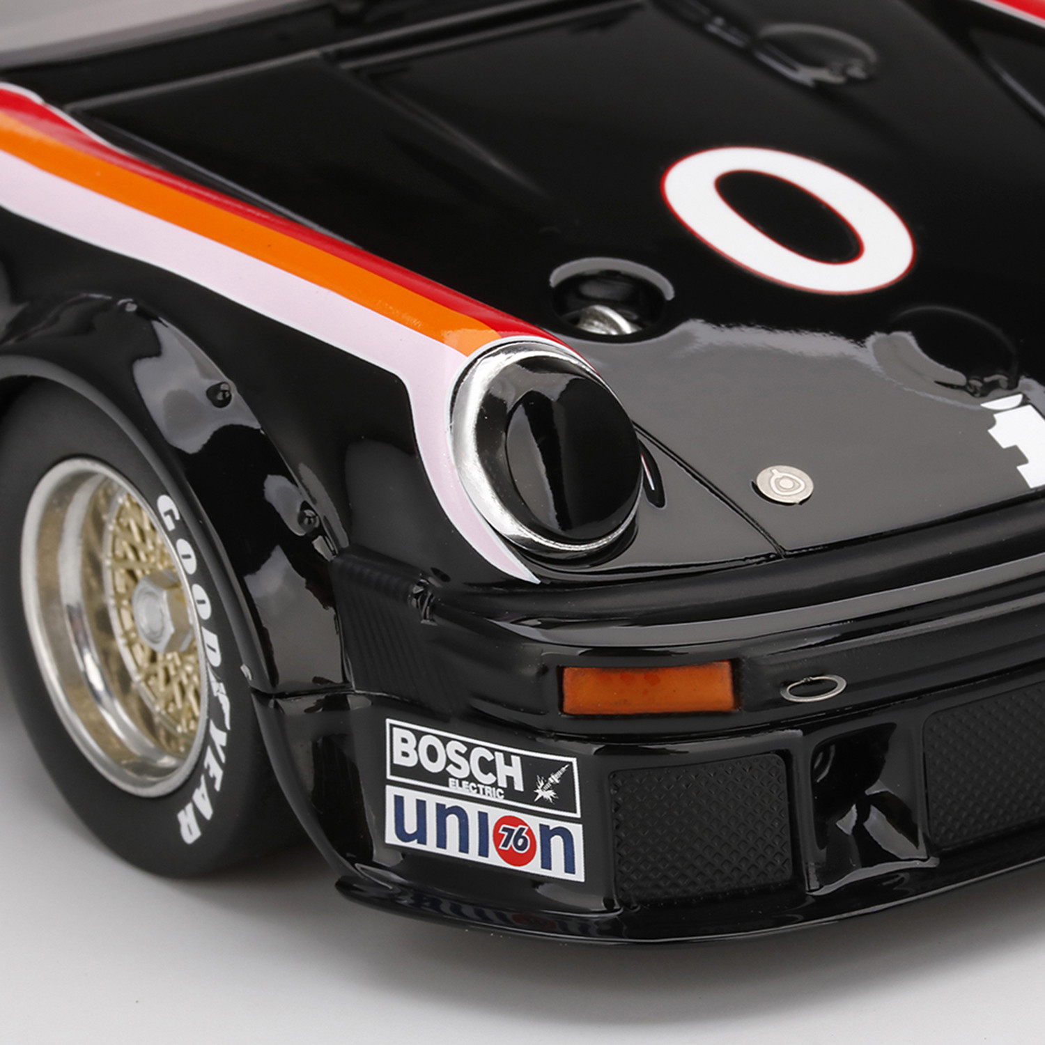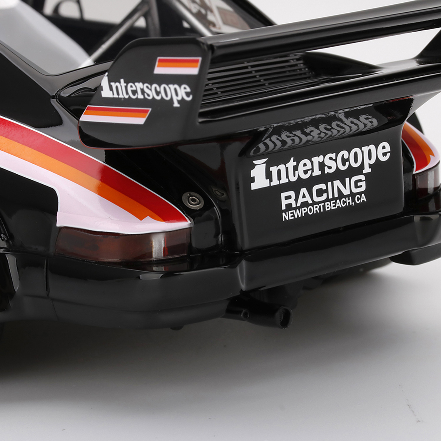 A beautifully replicated 1:18 scale resin model of the famous Interscope sponsored #0 Porsche 934/5 that was driven to victory at the IMSA Laguna Seca 100Mi race by Danny Ongais. This model features a highly accurate replication of the body design, a perfect application of the race livery exterior and fully detailed race interior.