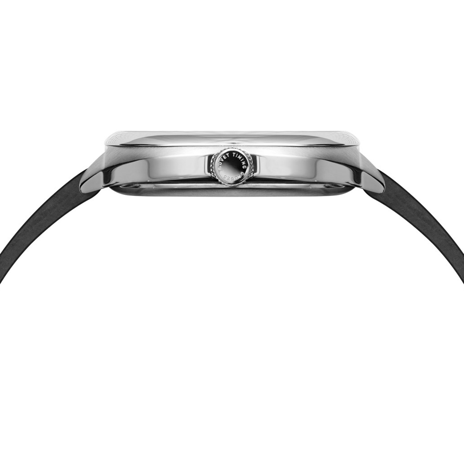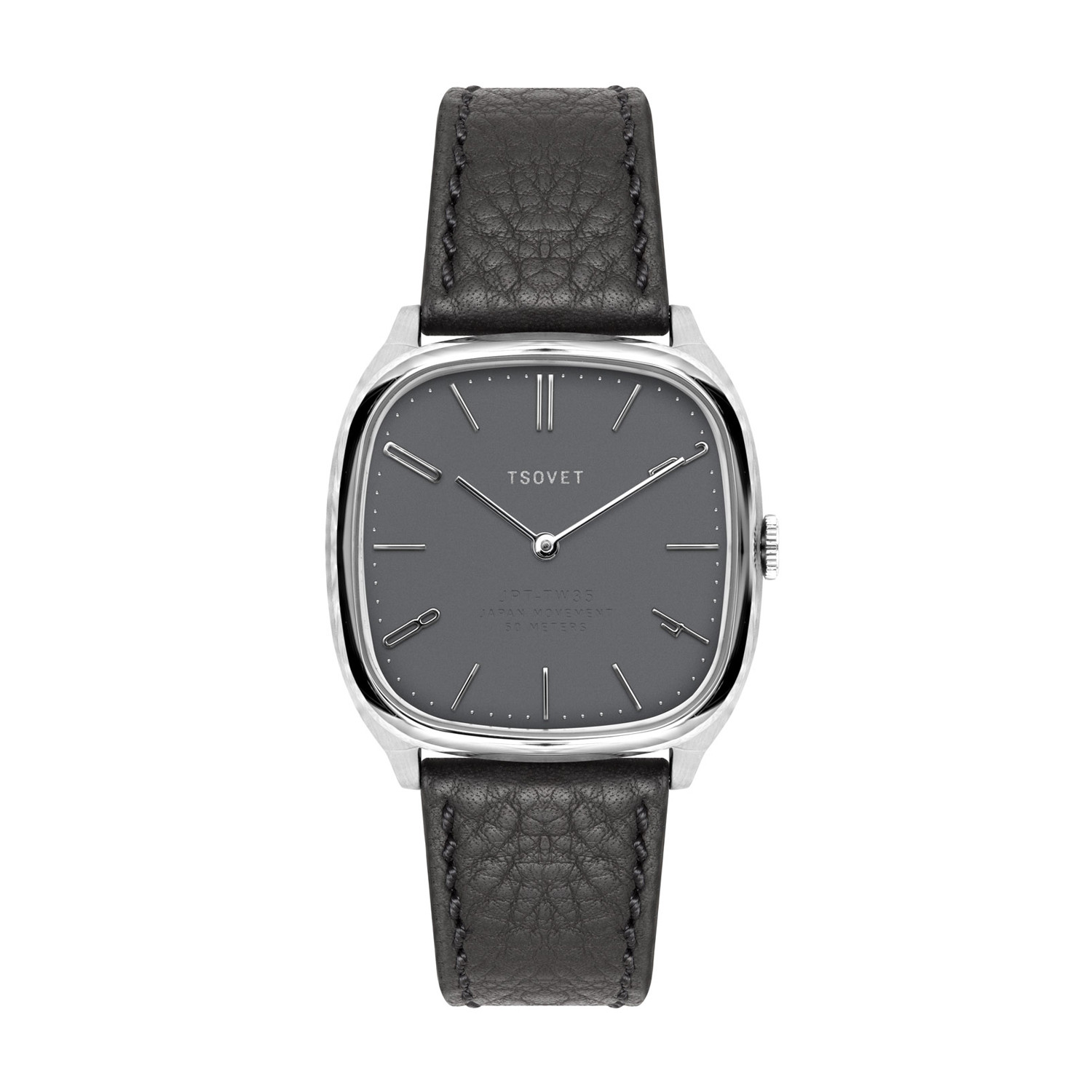 Think outside the circle. The JPT-TW35 offers distinct square dimensions with radius corners, accented by a 2-hand movement and the TSOVET trademarked "0 at 10" hour marker positioning. The slim 35mm compact case is accented with a contrast finishing which accents the JPT-TW35's minimalist design details. It is the smallest watch in the TSOVET collection, yet it boasts elements of stylistic grandeur.