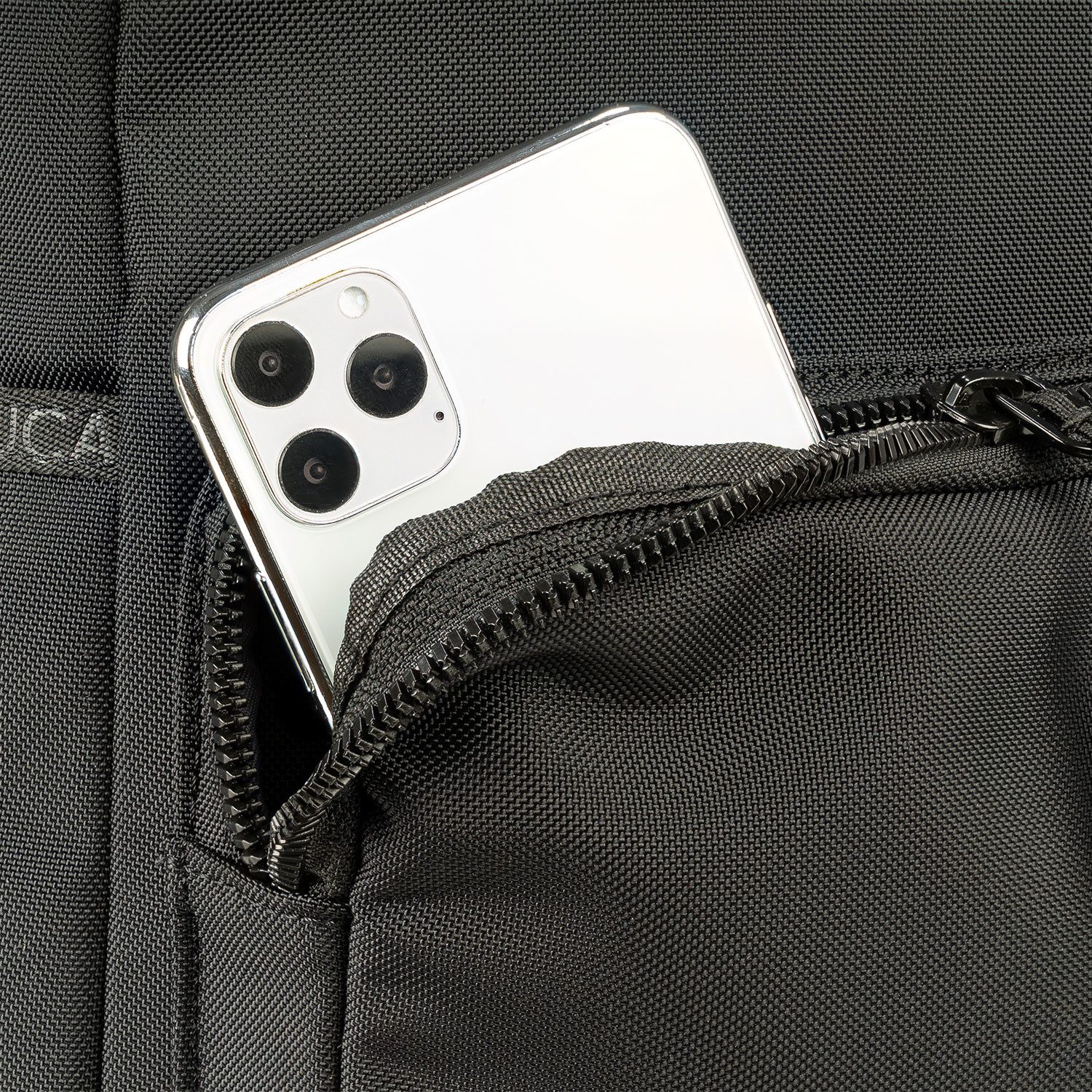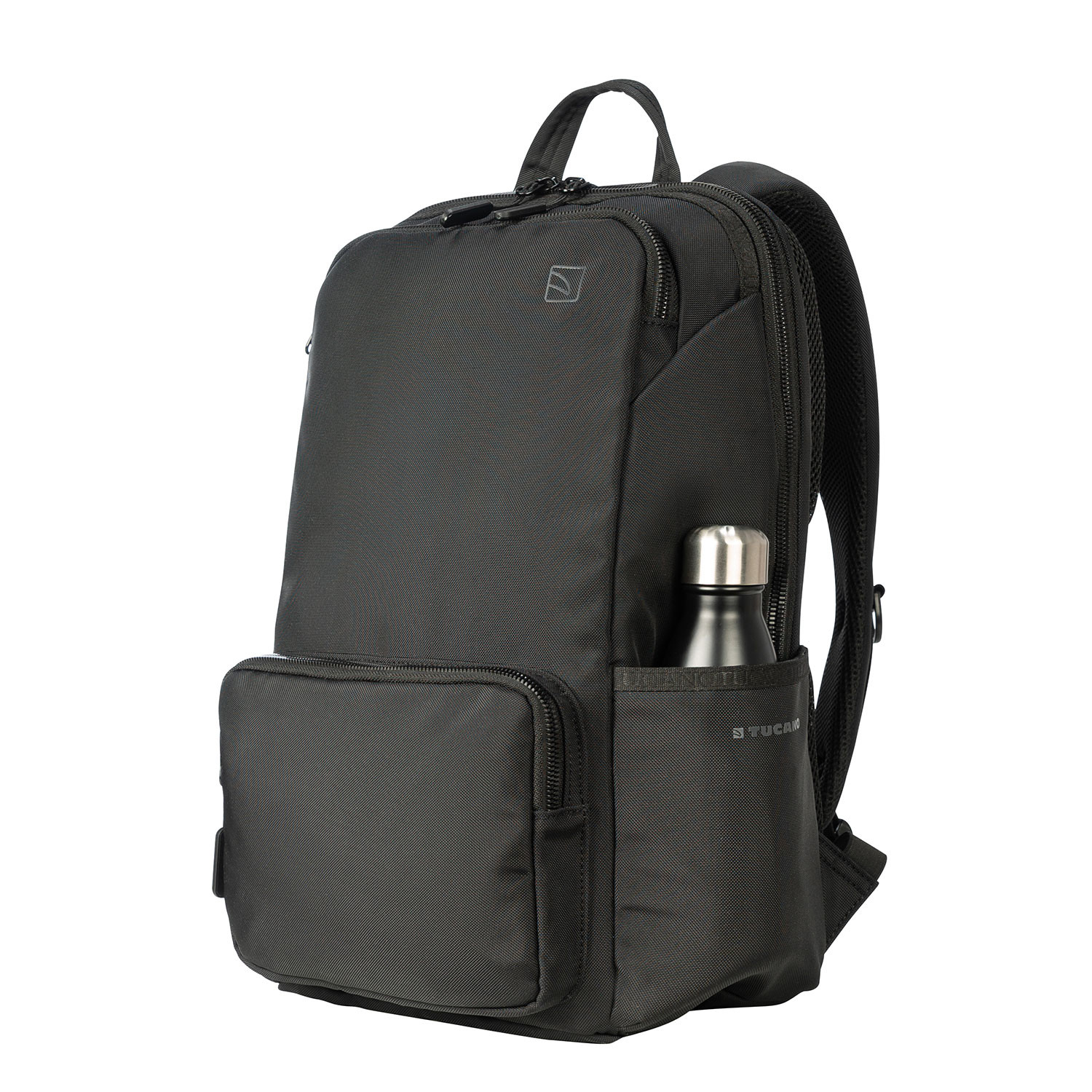 Made with high-density fabric, Terra will keep you well-organized with two padded inner pockets for tablets and laptops up to 15.6", two roomy front pockets of different heights, and two side pockets for an umbrella and a water bottle. The back is ergonomically designed and features padded shoulder straps, a trolley strap, and a security pocket. A removable rain cover, hidden in the bottom allows you to protect your backpack if the weather starts to turn.