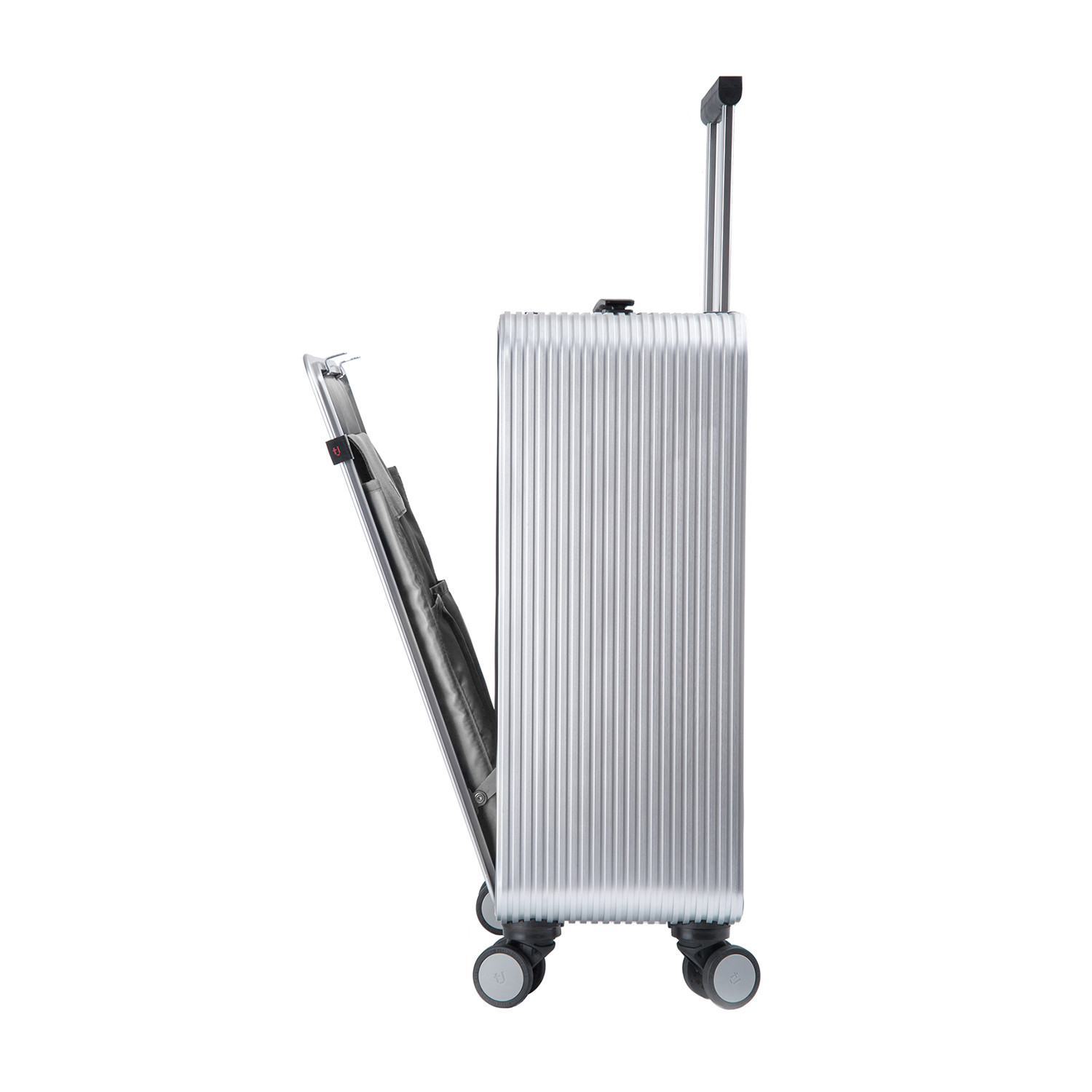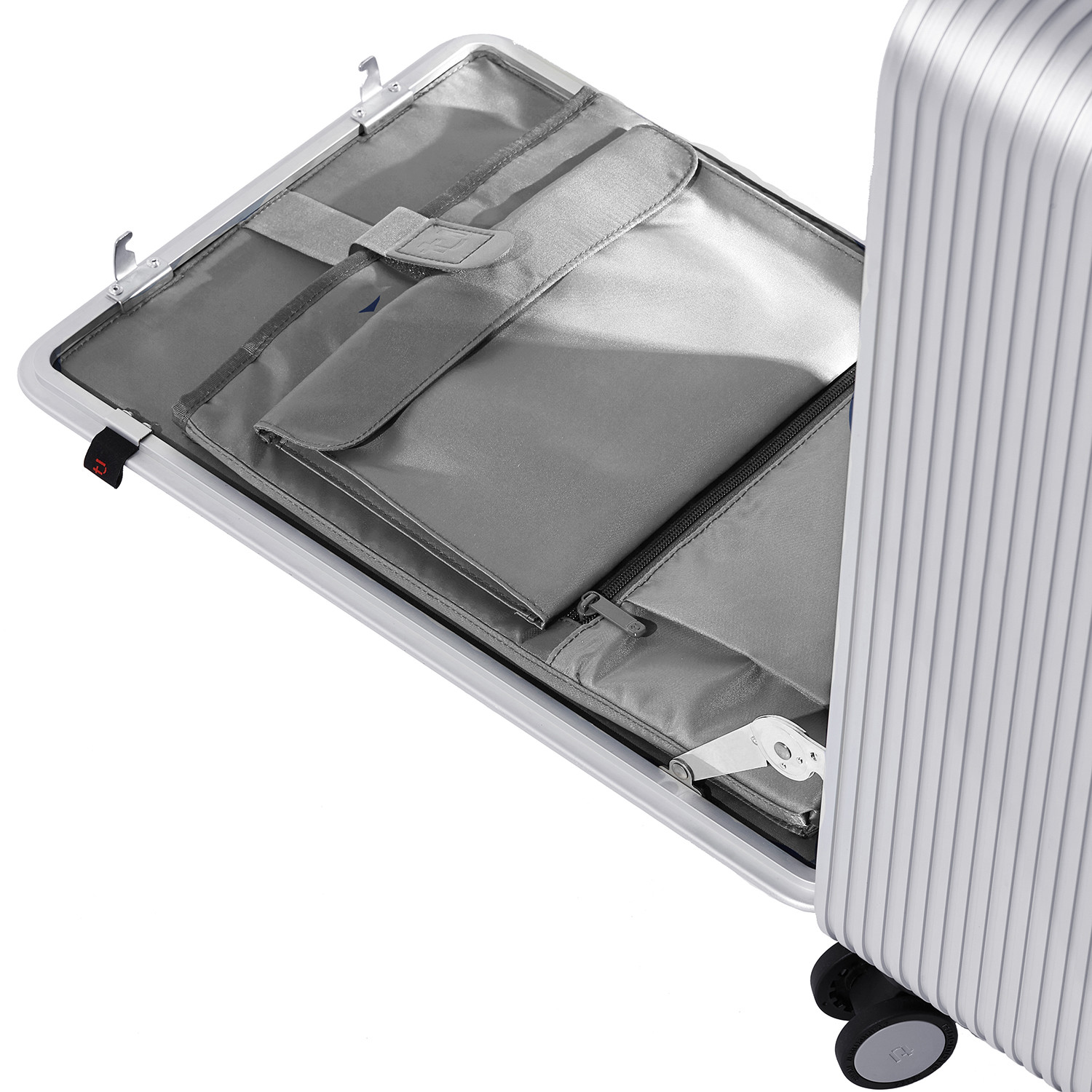 This innovative and trendy rolling luggage bag takes a minimalist approach to overhead carryon baggage with sleek, compact convenience. It also offers quick, TSA-approved access with a patented, One-Touch locking system for personal travel security. And with the Dual-Angle Open System, you can even access toiletries, makeup or mobile devices quickly with the 20° semi-open state, or open to 90° to easily organize clothing or shoes.