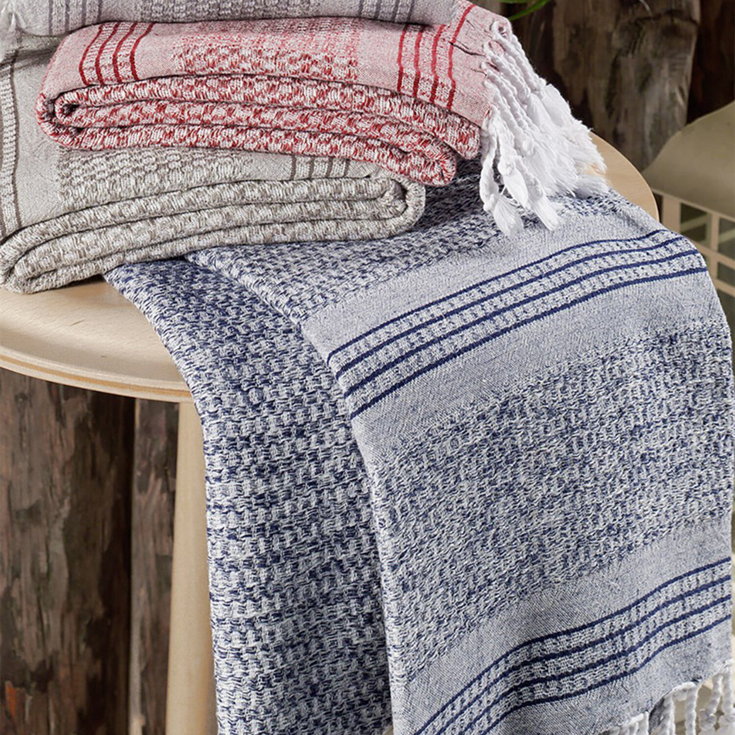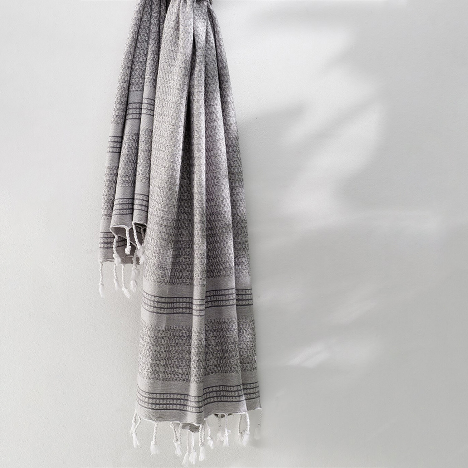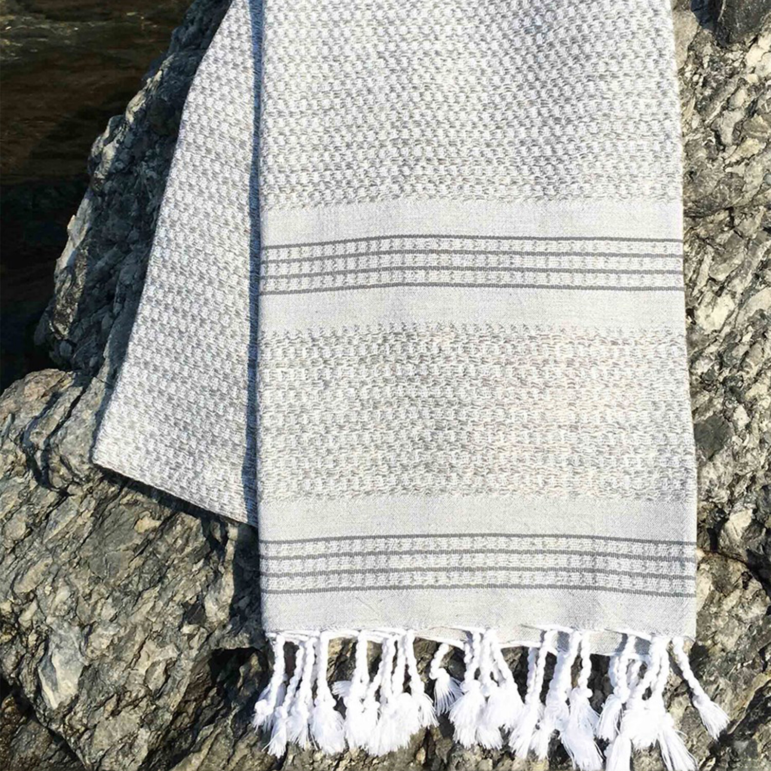 Woven with first class 100% cotton yarn, this peshtemal—or Turkish towel—is the perfect choice for everyday use after a shower, on the beach, or by the pool. This lightweight towel is super soft, absorbent, quick drying, and folds up small so it's easy to pack. With its classic colors and simple design, it adds an extra stylish touch to any bathroom, spa, or gym.