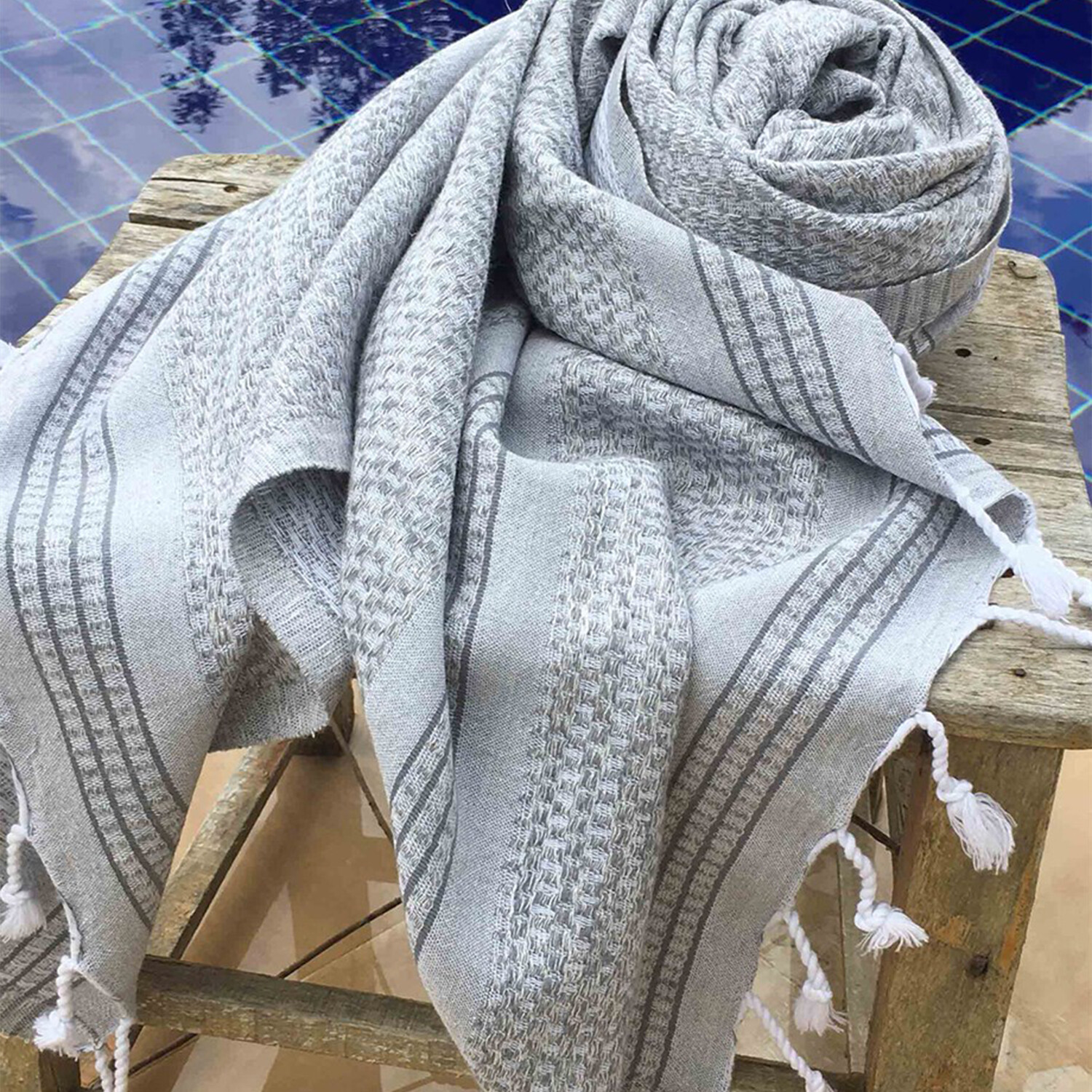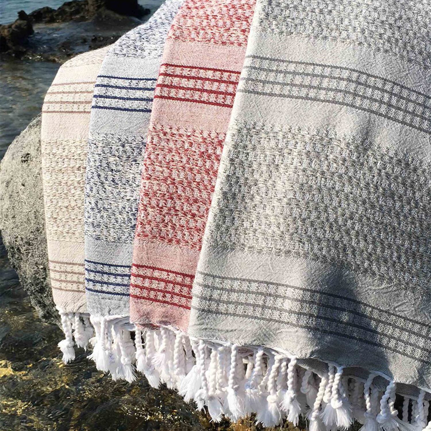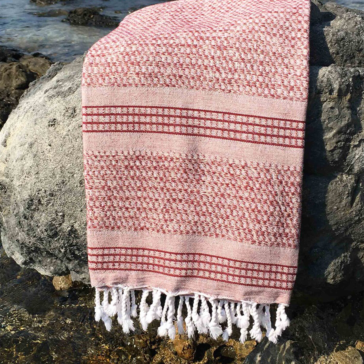 Woven with first class 100% cotton yarn, this peshtemal—or Turkish towel—is the perfect choice for everyday use after a shower, on the beach, or by the pool. This lightweight towel is super soft, absorbent, quick drying, and folds up small so it's easy to pack. With its classic colors and simple design, it adds an extra stylish touch to any bathroom, spa, or gym.