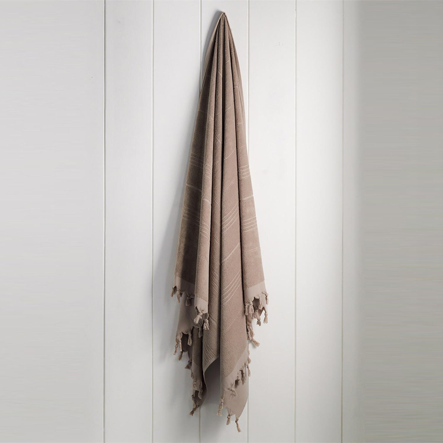 Woven with first class 100% cotton yarn, this peshtemal—or Turkish towel—is the perfect choice for everyday use after a shower, on the beach, or by the pool. This lightweight towel is super soft, absorbent, quick drying, and folds up small so it's easy to pack. With its classic colors and simple design, it adds an extra stylish touch to any bathroom, spa, or gym.