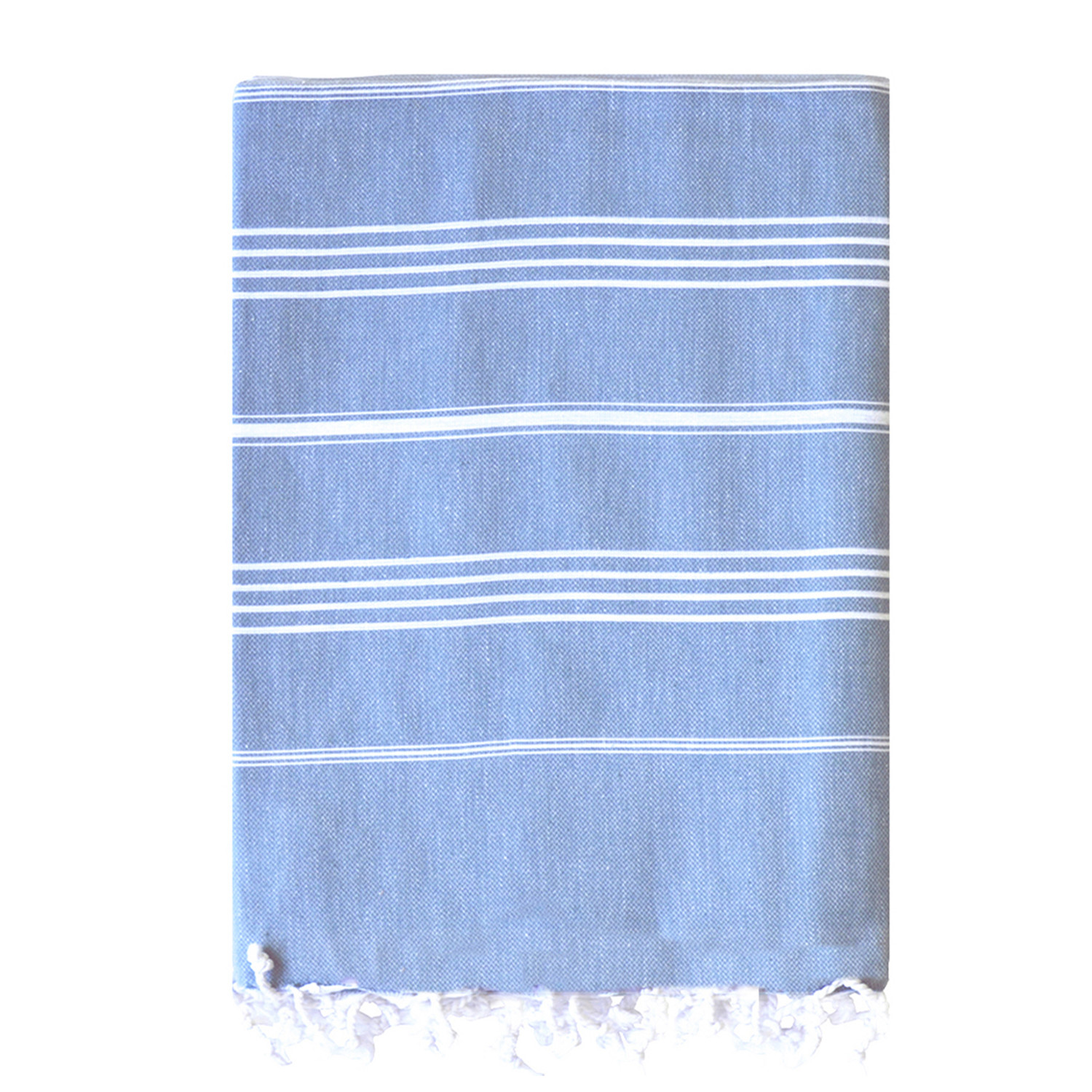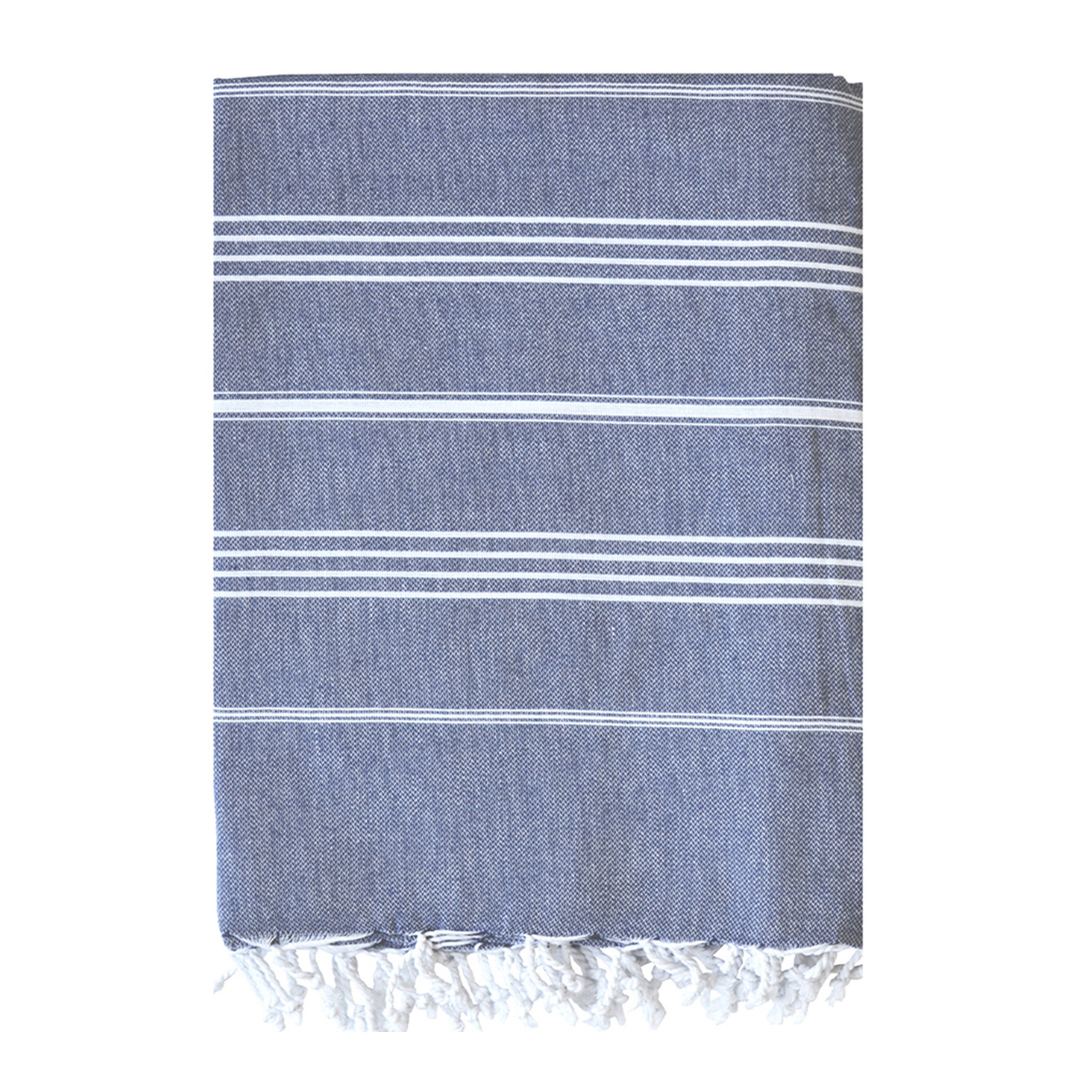 Loomed from the finest Turkish cotton, this Turkish Coverlet's sophisticated stripe pattern and extra length create a large tablecloth, bed topper, family beach blanket, shower curtain, and much more.