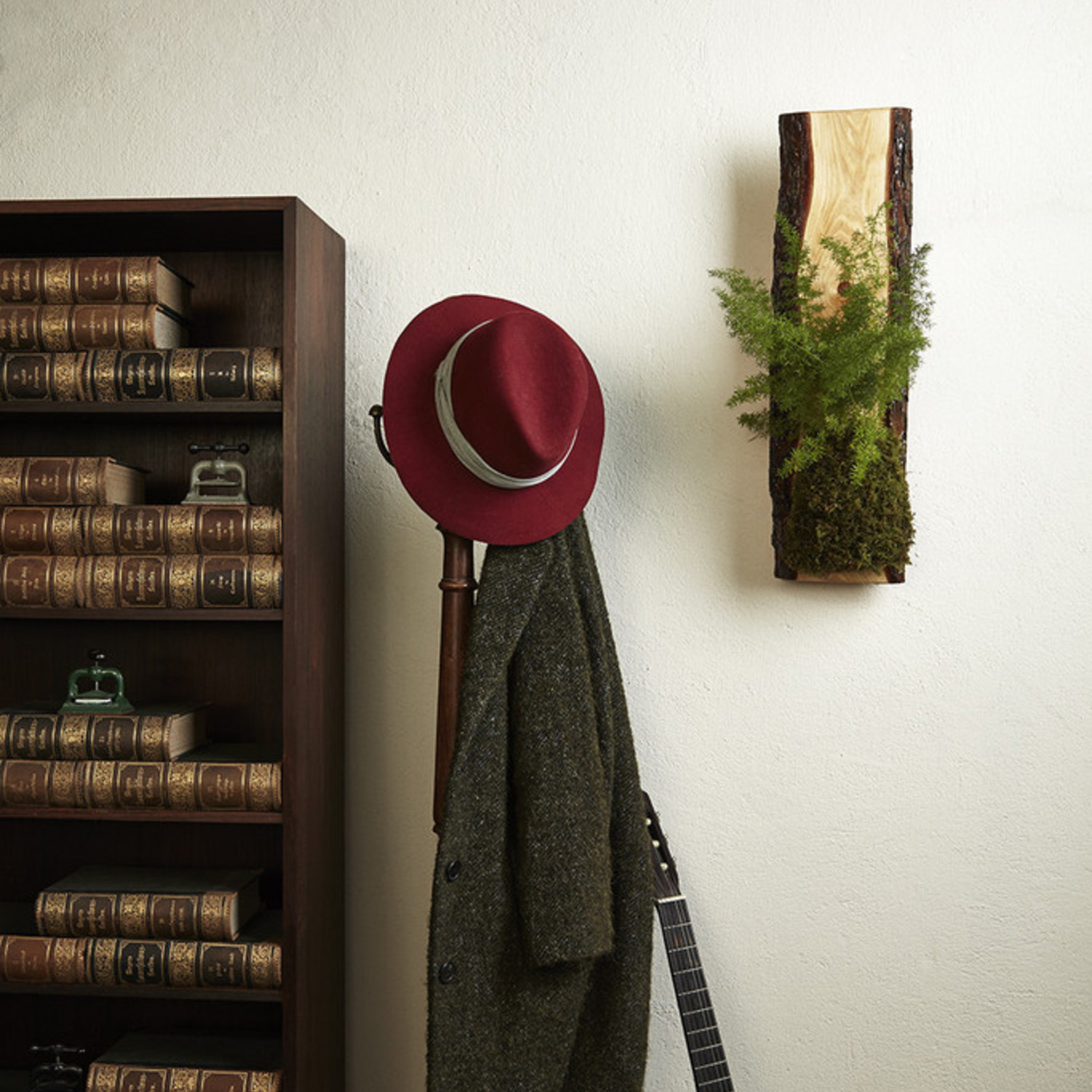Each part of these lovely wall-hung planters are made with care and the highest quality ingredients. These live-edge hard wood slabs are hand mounted with a living plant and with moss carefully woven in. And with an easy to care for Asparagus Fern, it will add just the right touch whether mounted on a wall or placed on a desk.