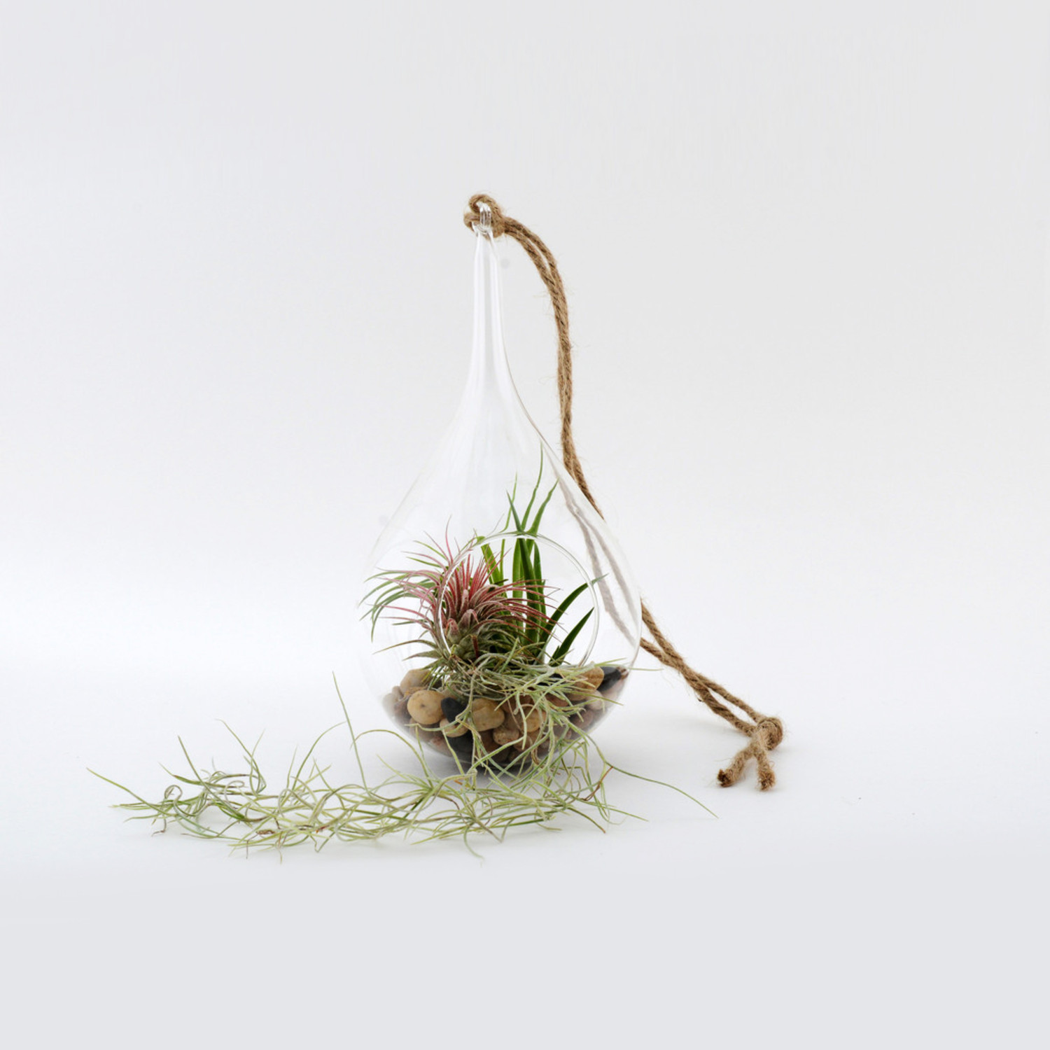The Air Up There is a breeze to care for. This airplant terrarium requires natural light and a good, twice weekly misting. Hang it near a window or anywhere you need a little green in your life. This kit comes with all you need, including the glass, river stone, rope, and tillandsia.