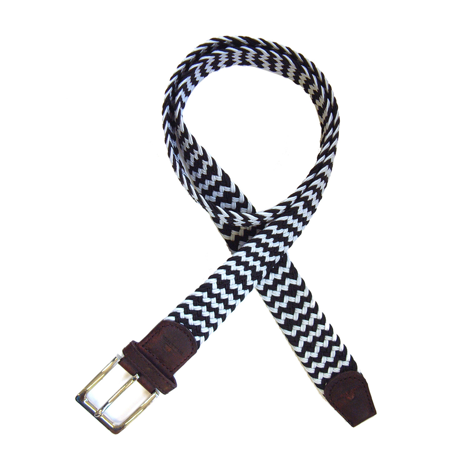 Add a splash of color and pattern to your style with this woven cotton-covered fabric belt. Luxe leather trimmings and an anti-tarnish, bright silver finish buckle keep it classic, but the true merits of the belt lie in its structure: the buckle prong simply passes through the belt material, creating the perfect fit no matter how much weight you gain or lose. This preppy staple looks great with jeans, chinos or suit trousers.