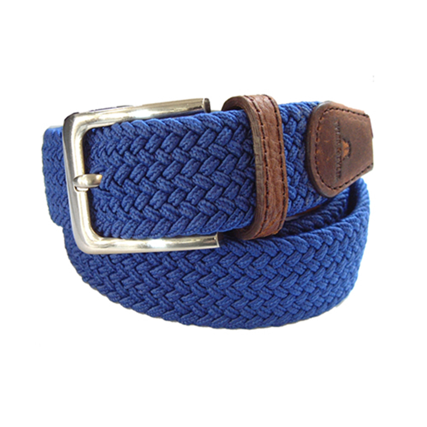 Add a splash of color to your style with this woven cotton-covered fabric belt. Luxe leather trimmings and an anti-tarnish, bright silver finish buckle keep it classic, but the true merits of the belt lie in its structure: the buckle prong simply passes through the belt material, creating the perfect fit no matter how much weight you gain or lose. This preppy staple looks great with jeans, chinos or suit trousers.