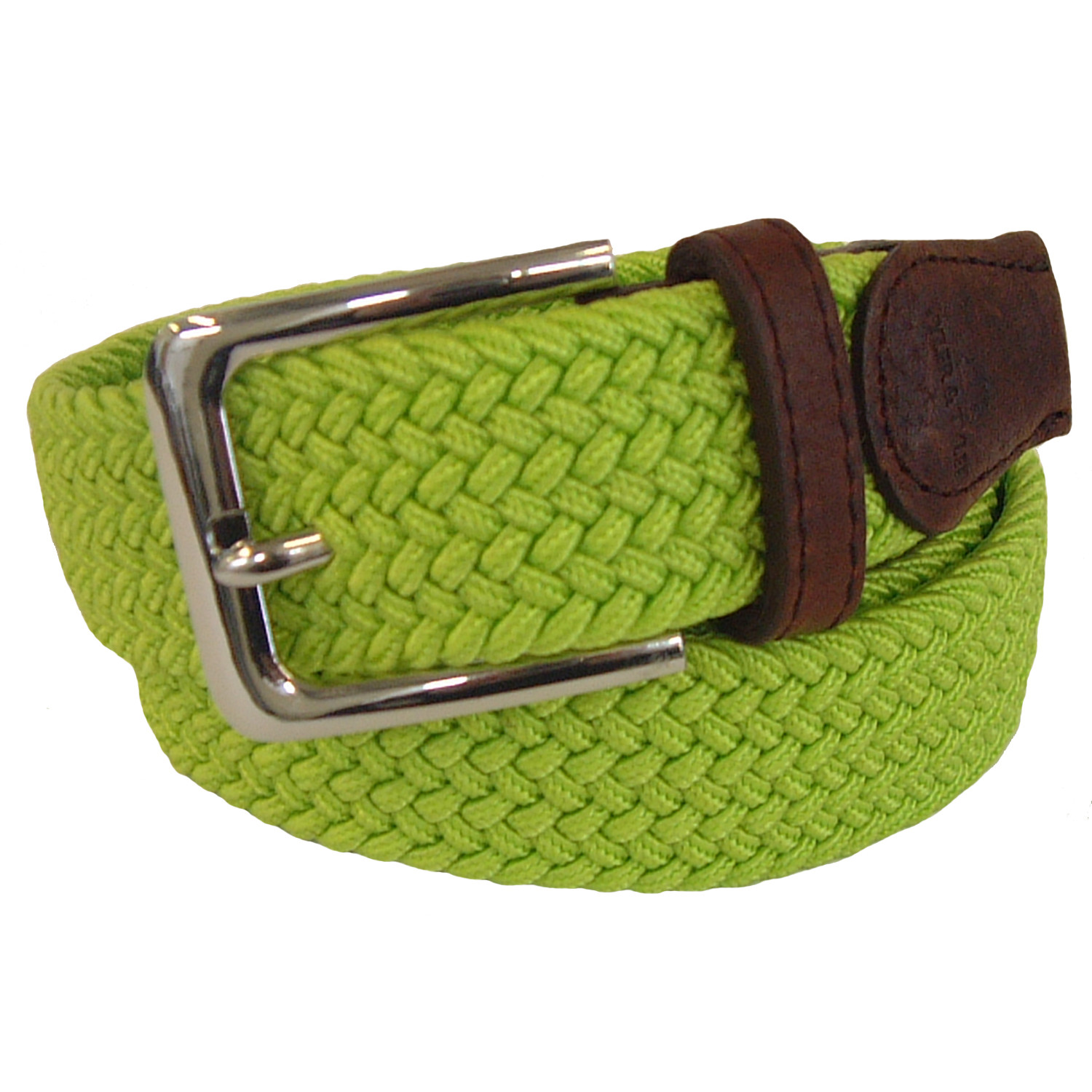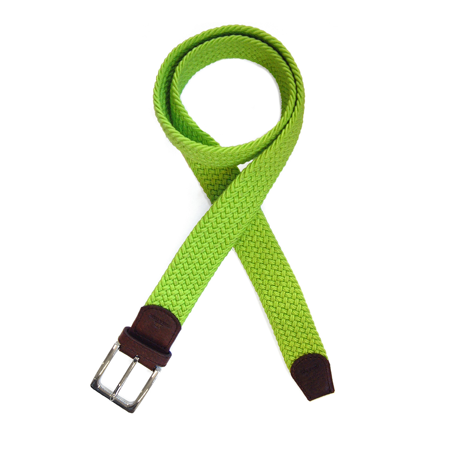 Add a splash of color to your style with this woven cotton-covered fabric belt. Luxe leather trimmings and an anti-tarnish, bright silver finish buckle keep it classic, but the true merits of the belt lie in its structure: the buckle prong simply passes through the belt material, creating the perfect fit no matter how much weight you gain or lose. This preppy staple looks great with jeans, chinos or suit trousers.