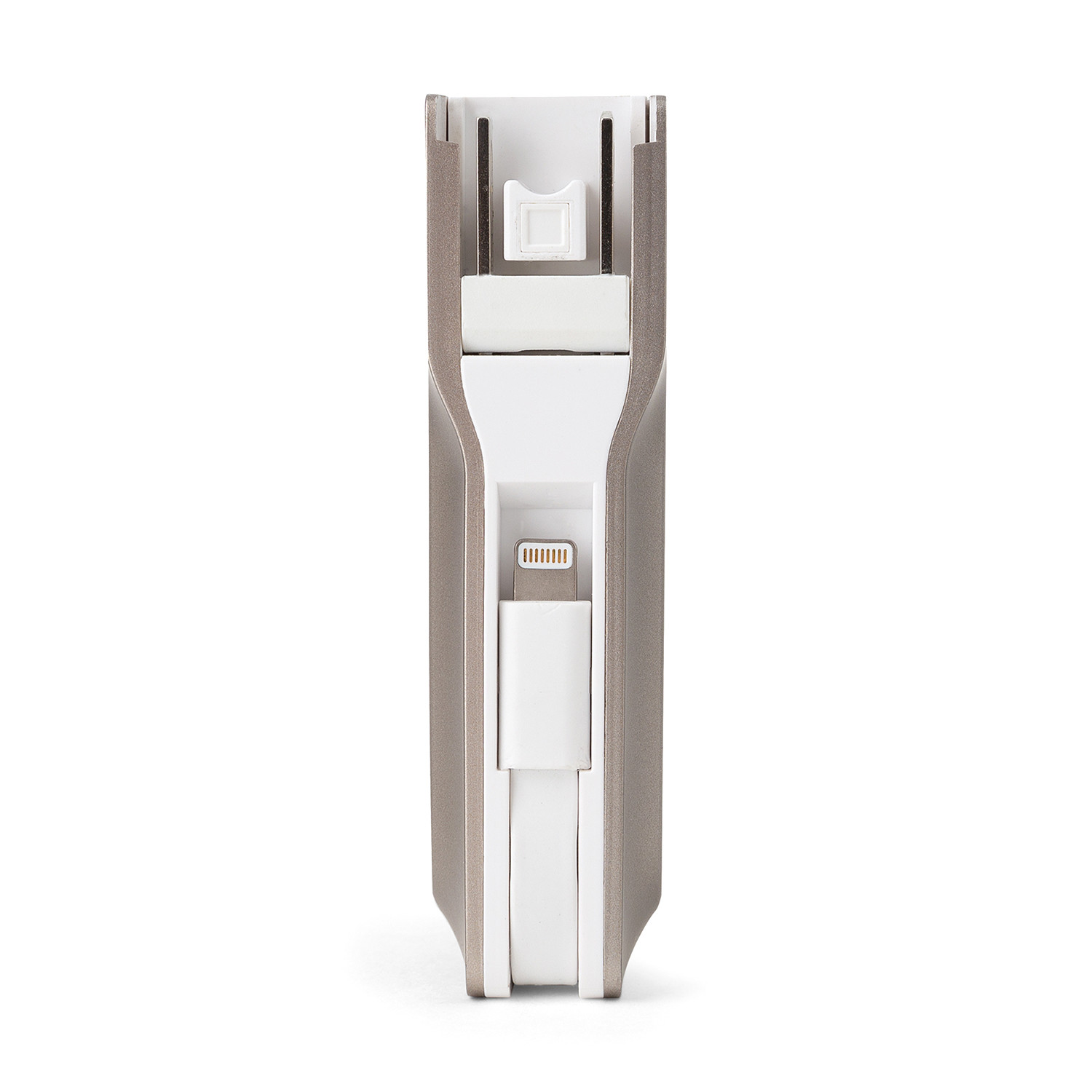 The 6,700 mAh battery will recharge your phone up to 3 times and the built-in charging arm means you don’t need any extra charging cables. The 3X also contains and additional USB port to charge two devices simultaneously. Charge iPhone models 5 and later with the built-in Lightning cable.