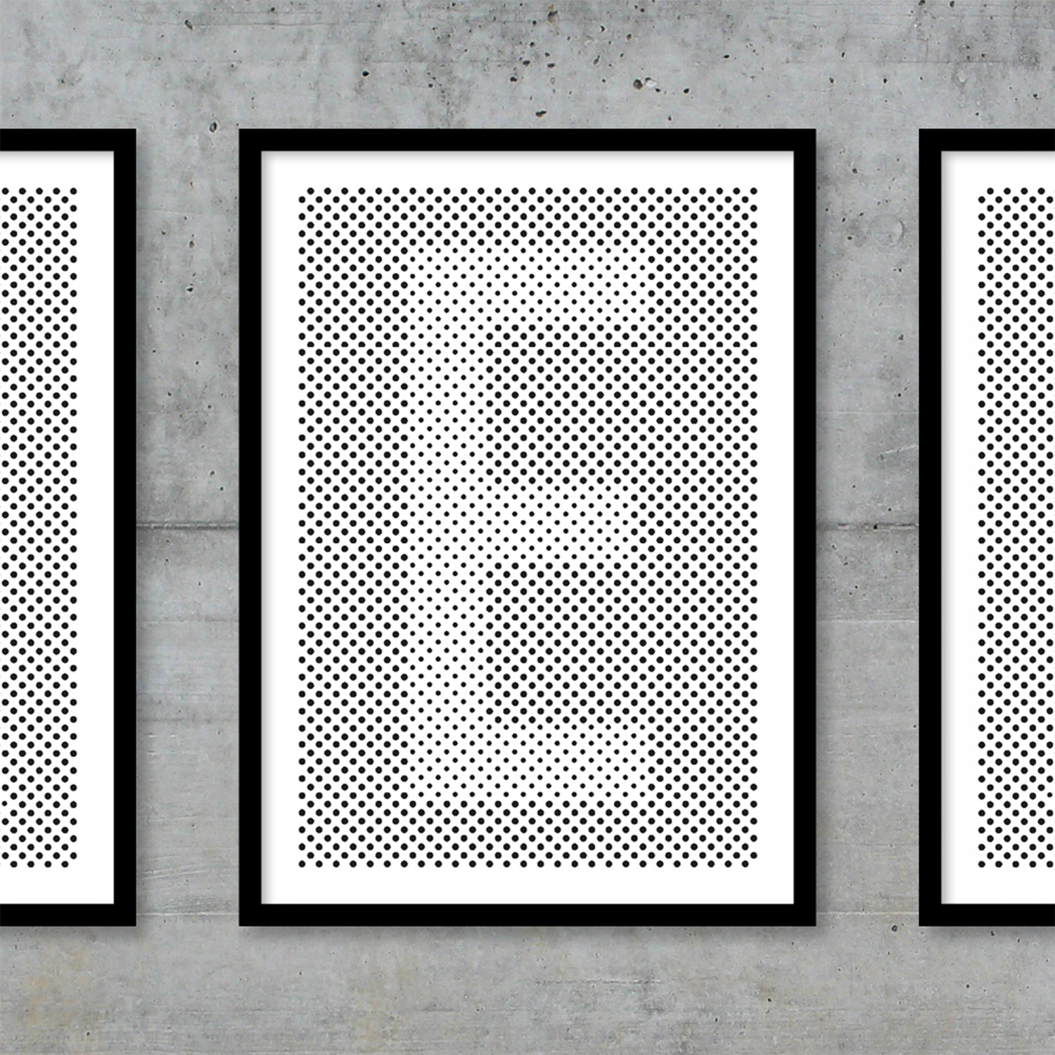 Incorporating the famed Ben-Day Dot style onto a sleek black and white depiction of the letter "E," this print is a perfect finishing touch for the home or office. It's printed on Mohawk Superfine White Eggshell 270 Gsm paper for the utmost in quality.