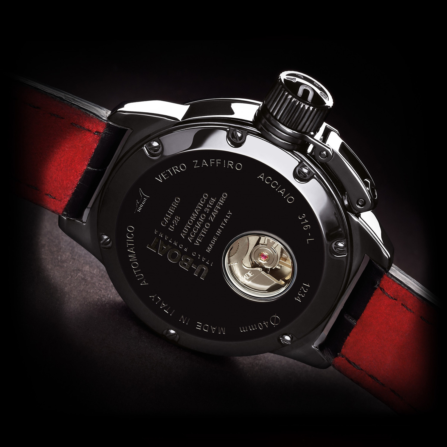 - SCREW-DOWN caseback stainless steel black coated 7 tray, engraved with manufacturer-logo, with sapphire glass window
