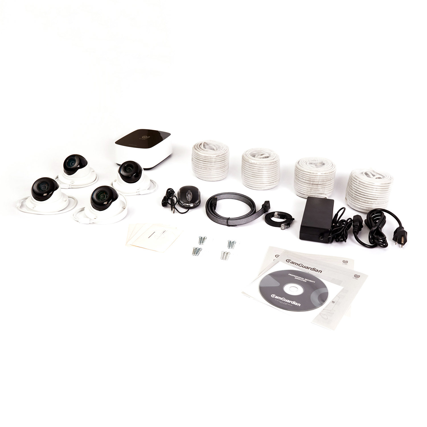 The CamGuardian H1 HD IP Security Camera System is a completely integrated home security solution that anyone can use. It includes 4 indoor or outdoor cameras that record in 720p HD, and an H1, 8 channel POE recording network. This means that you get up to 4 TBs of hard drive storage, 1GB of free cloud storage, and real time monitoring anytime, anywhere, via the companion smartphone app. The system is entirely plug-and-play, so everything you need comes in the box and can be set up instantly, giving you the freedom to set up your gear exactly when and where you want it.