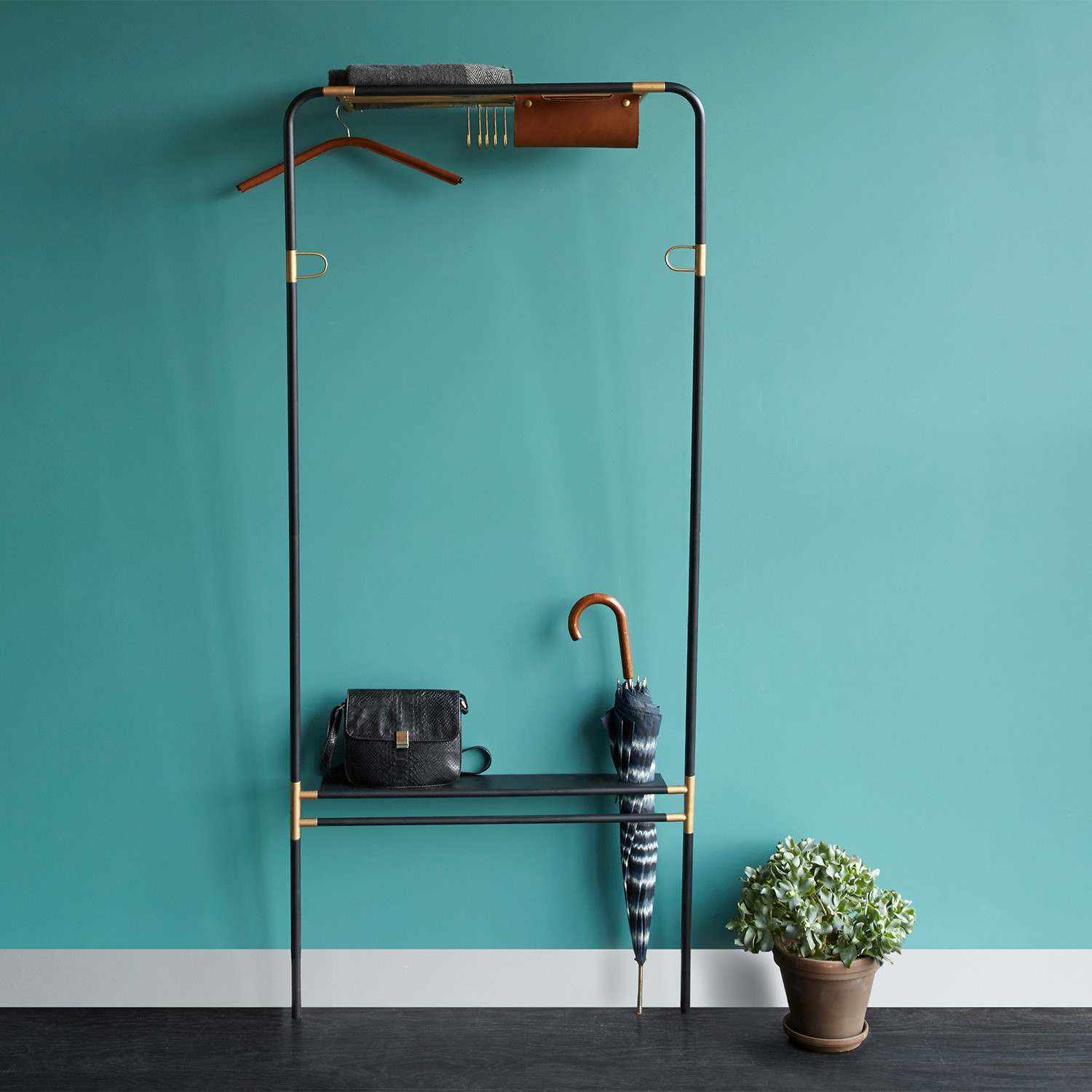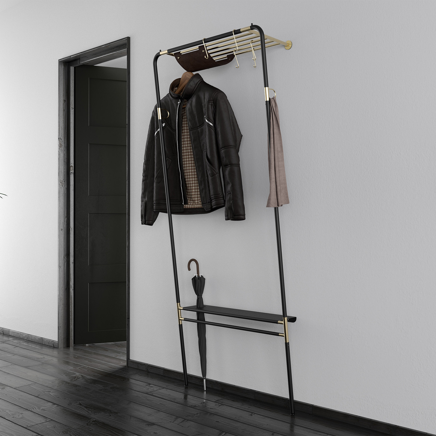 The Lean On Me clothes rack lets you comfortably store all of your outdoor essentials while taking up almost no floorspace. Because it's designed to lean at an angle away from the wall at its base, Lean On Me is perfect for narrow hallways and other places where room is tight.