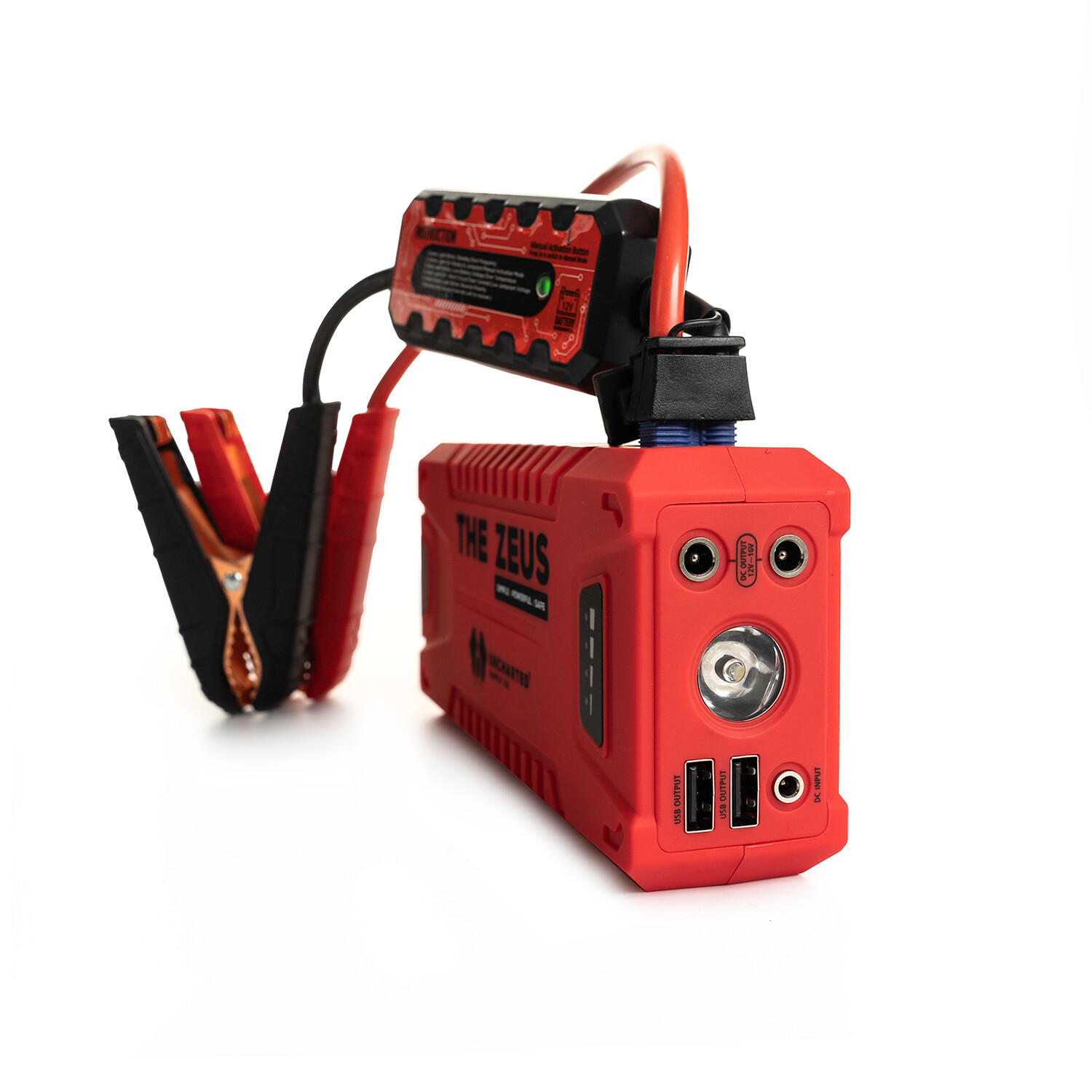Find everything you need in the Zeus. This portable jump starter and battery charger can get you back on the road when no one’s on the other end of the jumper cables, fully recharge your power tools, and revive your dead devices if no power supply is near.
