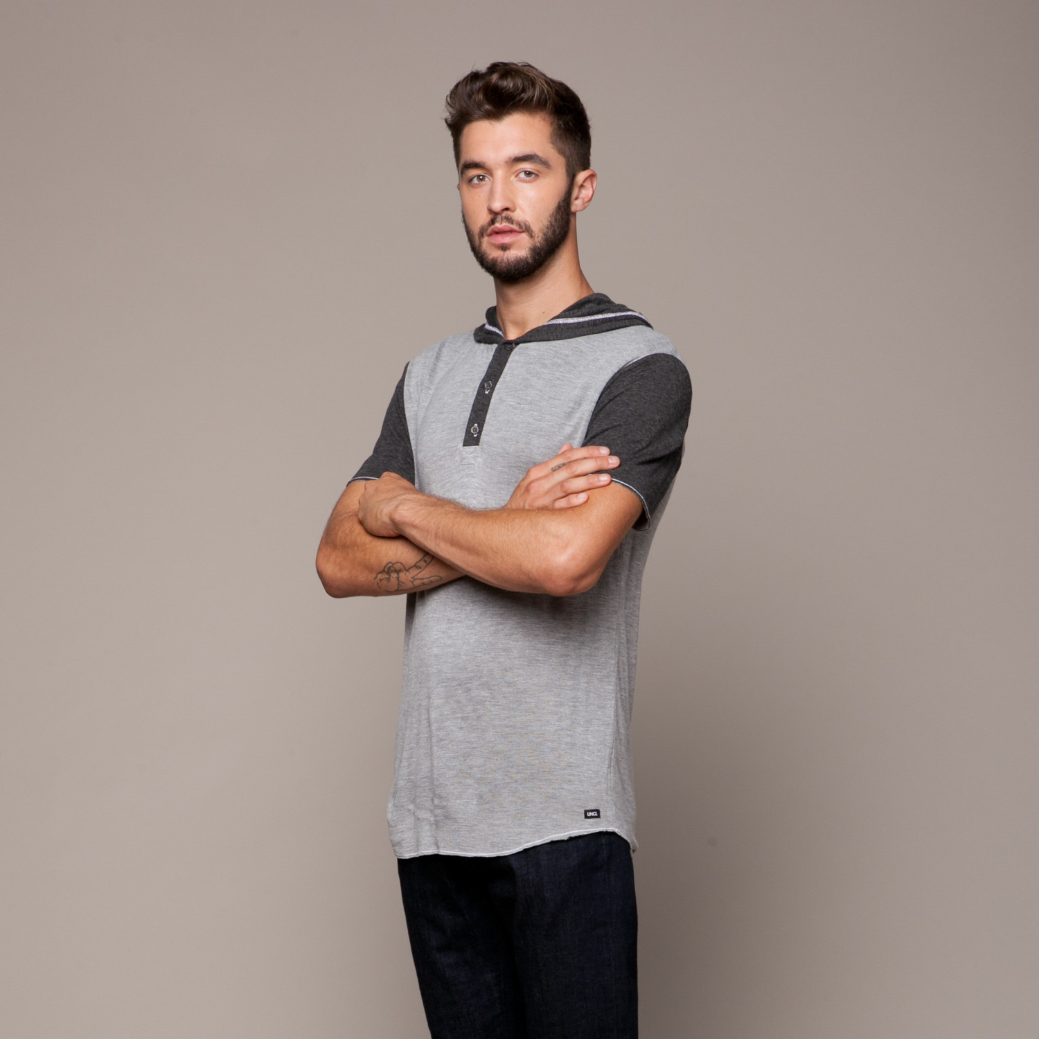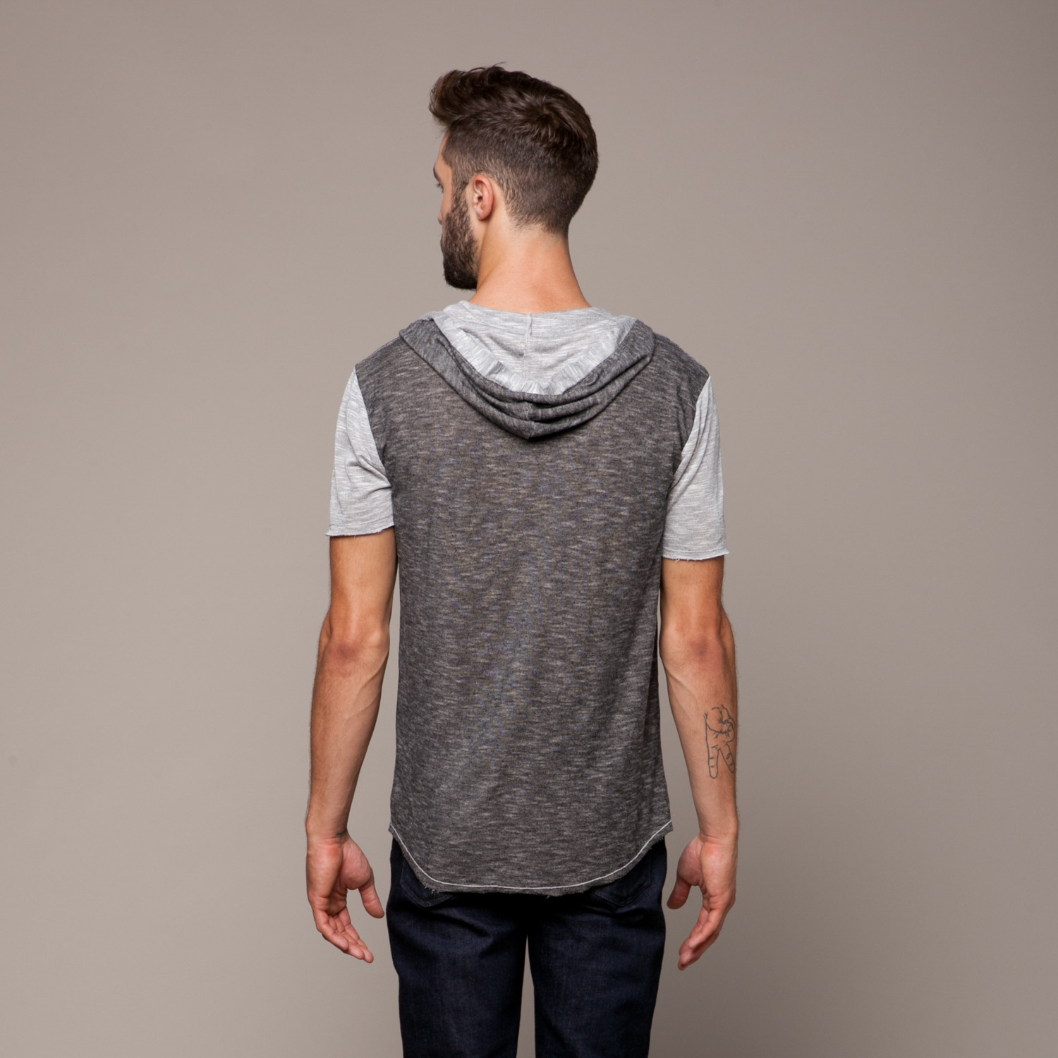 A contemporary hooded henley crafted in Los Angeles, the silky double knit blend has stitch-reinforced, cut-off sleeves and a raw-edge hem which enhances its laid-back look. Perfect for the beach or brunch, you'll want to wear it everywhere.