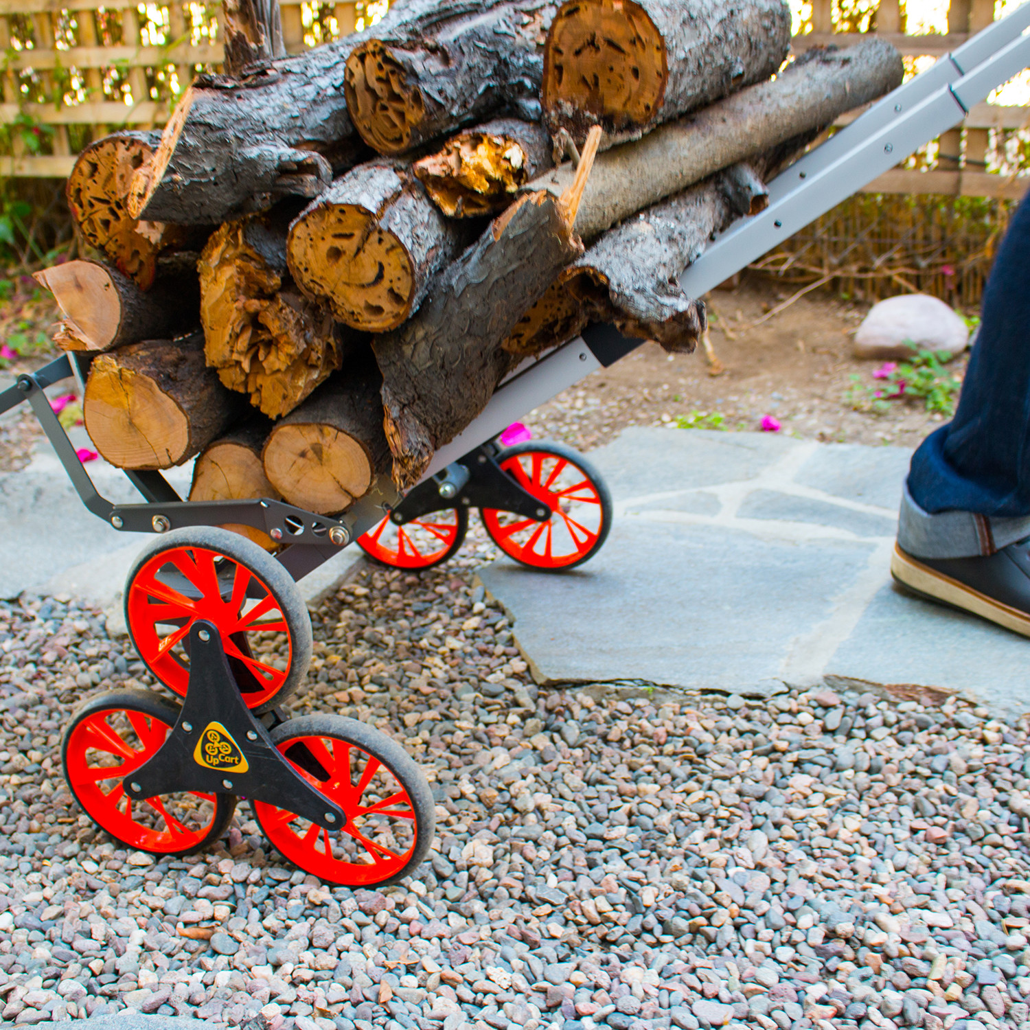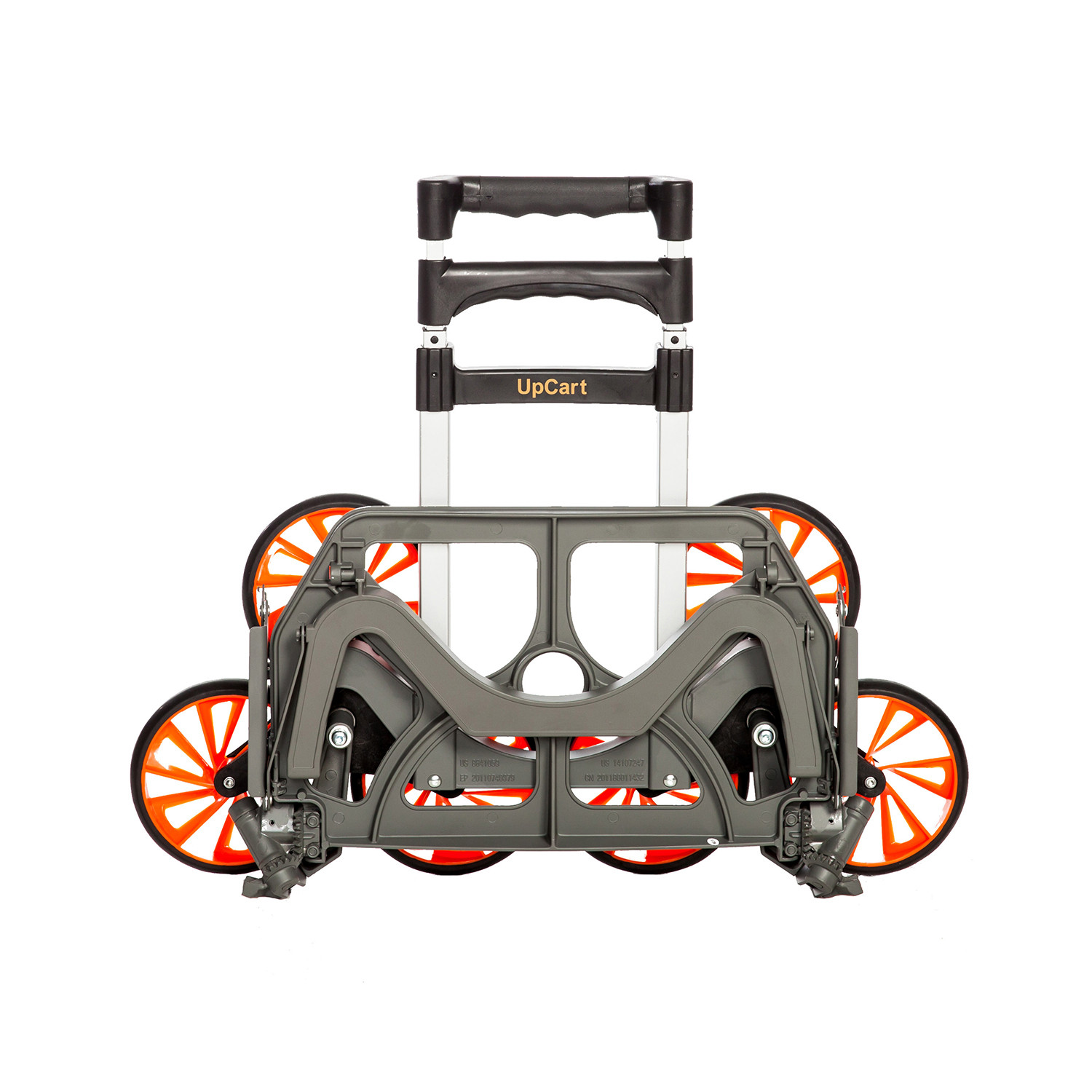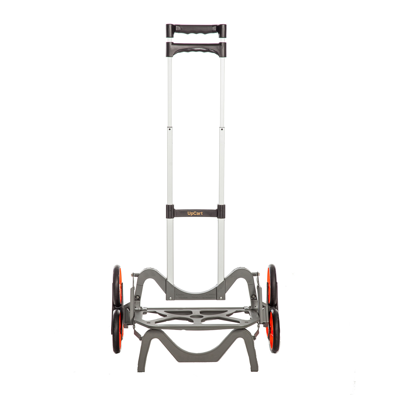 The UpCart Deluxe is an all-terrain, stair climbing folding cart like no other. This robust hand cart holds up to 125 lbs, but only weighs 10.6 lbs. The Deluxe decreases pressure applied on supporting surfaces, improves stability, and is capable of “walking” over curbs, stairs and irregular terrain. It still folds completely flat for the simplest transportation and storage. Independently tested to reduce effort by up to 64% over other 2-wheeled carts, the UpCart Deluxe is up for anything.