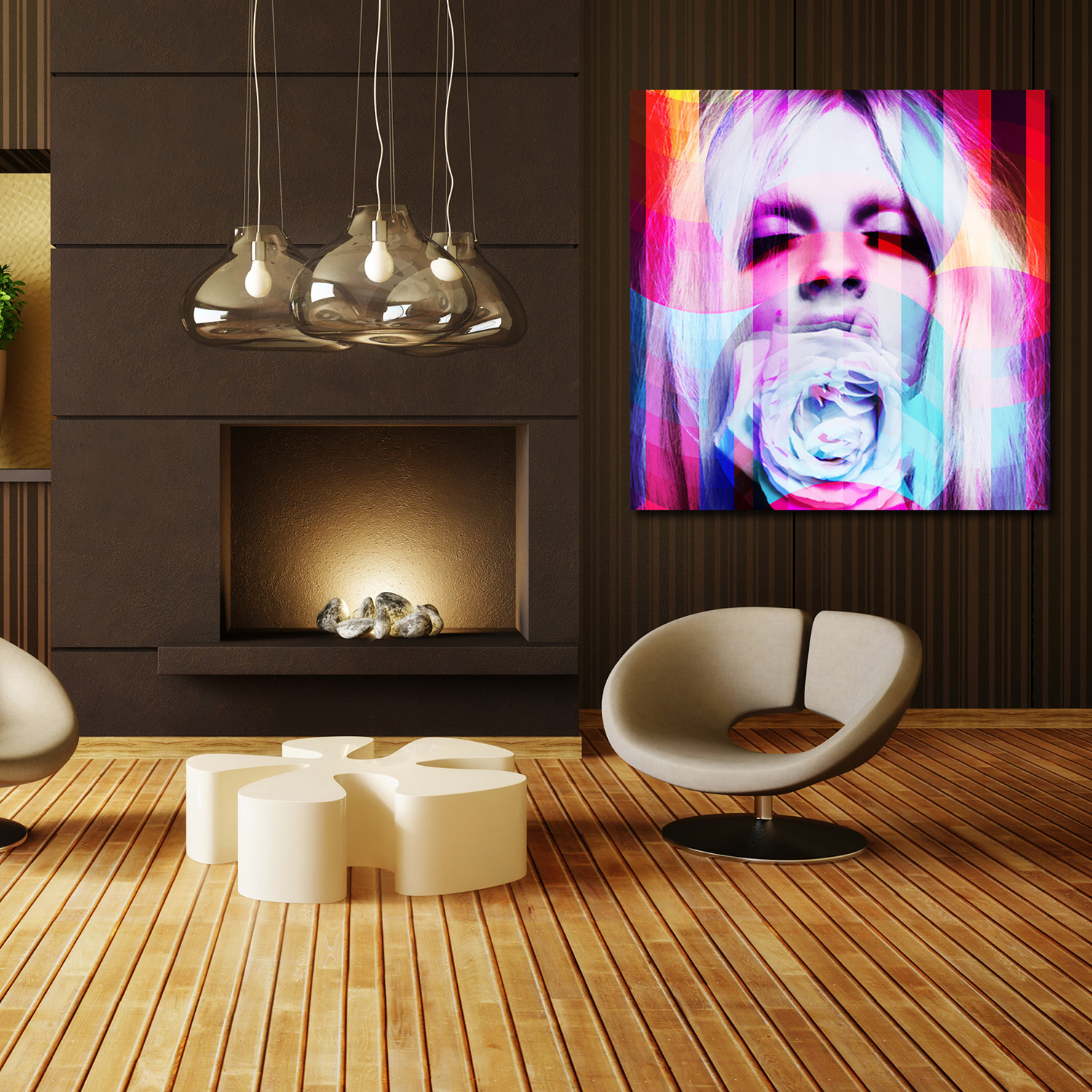 Flower is emblematic of a love of vibrant, pop art sensibilities, and a unique, modern art addition to any space. Created by individually layering images that are captured on film, the printed canvas is mounted on a freestanding wood frame for a gallery style finish perfect for showcasing.