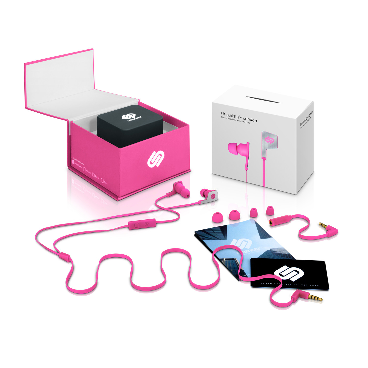 Urbanista London is for the active audiophile. London is an elegant, highly sophisticated and dynamic "in-ear" headphone with microphone in a sleek metropolitan design and a bashful pink steel surface. London is wrapped in a luxurious and functional "cuff link" box with cable management for easy storage when not in use.